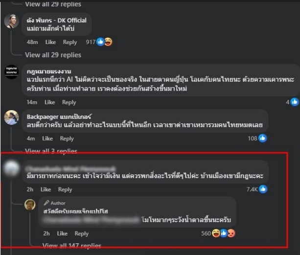 แทนที่จะรับฟังคำเตือนอย่างสุภาพ แจ็กแปปโฮกลับเลือกตอบโต้ด้วยข้อความเชิงกวน และยังตอบคอมเมนต์อื่นในทำนองไม่สนใจดราม่า เช่น “โมโหมากๆระวังน้ำตาลขึ้นนะครับ”