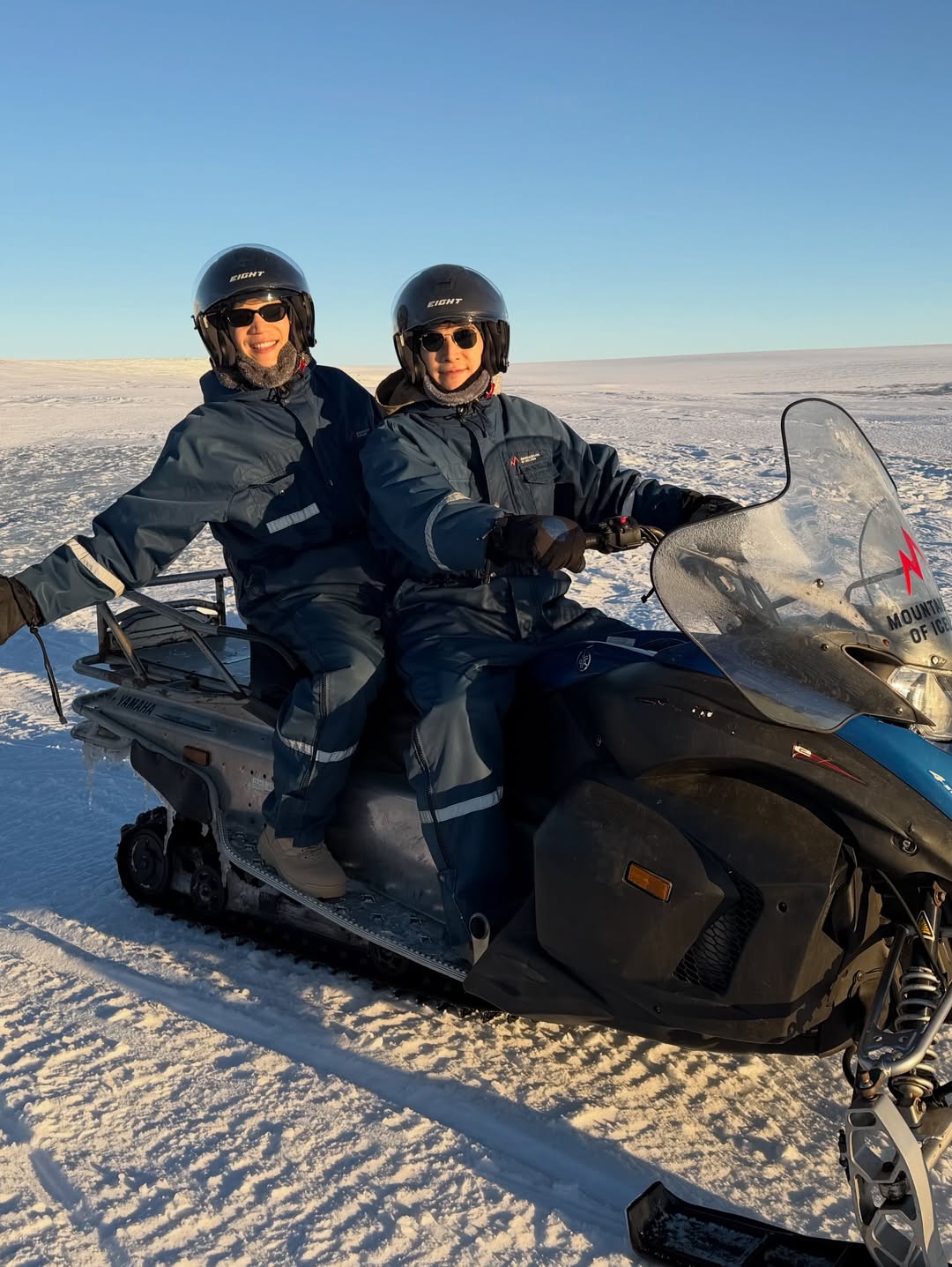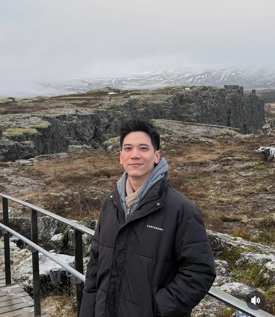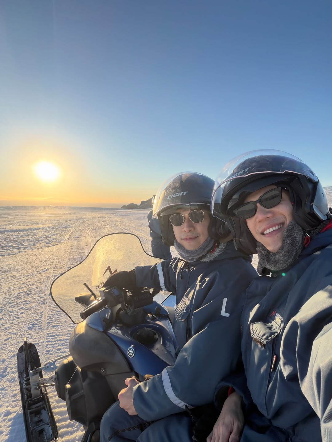​เริ่มต้นที่ ไอซ์แลนด์ แดนน้ำแข็งและภูเขาไฟ ทั้งคู่ได้พากันไปสัมผัสประสบการณ์สุดตื่นเต้น ทั้งการตะลุยขี่สโนว์โมบิลท่ามกลางทุ่งหิมะสีขาวโพลน ที่แค่เห็นรอยยิ้มภายใต้หมวกกันน็อกของทั้งคู่ ก็รู้เลยว่าทริปนี้เต็มไปด้วยความสุข (ดังภาพที่ถ่ายคู่กันบนสโนว์โมบิล) และยังได้ไปชมความอลังการทางธรรมชาติที่รอยแยกแผ่นทวีป ซึ่งภาพถ่ายของ “หมอตินน์” ยืนหล่อเท่ท่ามกลางฉากหลังสุดขรึมนั้น ก็ชวนให้แฟนๆ เข้าไปกดไลก์รัวๆ