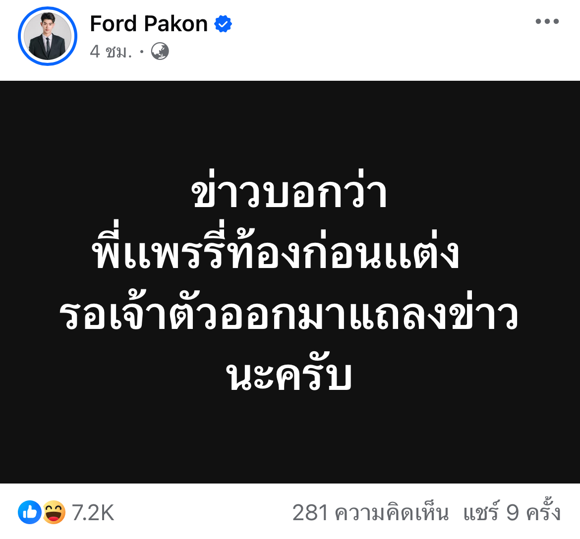 “แพรรี่ ไพรวัลย์” อินฟลูเอนเซอร์ชื่อดัง มีภาพหวานเข้าพิธีแต่งงานกับ “ฟอร์ด ปกรณ์ศักดิ์” แฟนหนุ่มรุ่นน้องว ต้องบอกว่าภาพดังกล่าวสร้างความฮือฮาในโลกออนไลน์เป็นอย่างมาก และหลายคนต่างเข้ามาร่วมแสดงความยินดีกันอย่างล้นหลามเลยทีเดียว งานนี้ก็ทำคนมาแซวว่าแต่งเร็วแบบนี้ท้องก่อนแต่งแต่นอนงานนี้ ฟอร์ด ก็ได้ออกมามาพูดความจริงโดยใช้Ai ทำเอาหลายๆคนฮากันทั่วโซเชียล