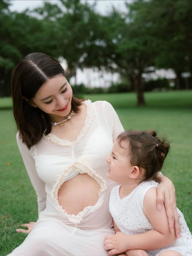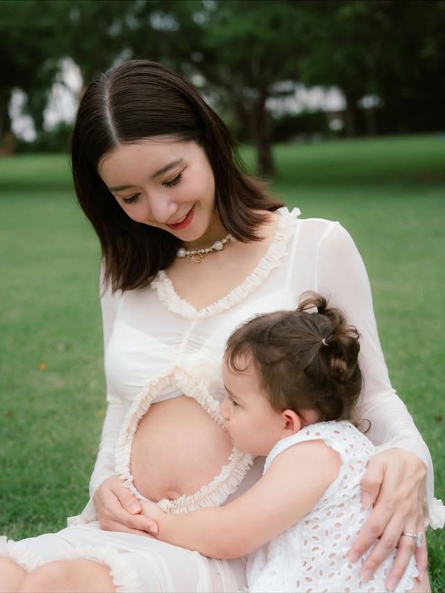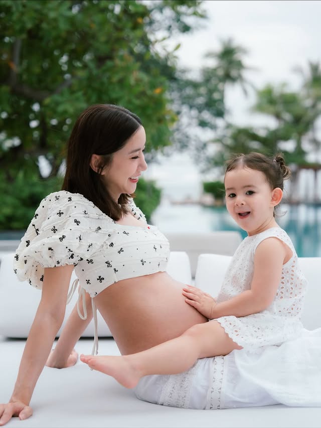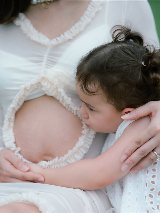 ภาพที่ถูกปล่อยออกมานั้นบอกเลยว่า อบอุ่นมากกกกก ทั้งสายตาแม่ที่มองลูกสาวด้วยความรักเต็มหัวใจ และท่าทางน้องเลอาที่เหมือนกำลัง “คุยกับน้องในท้อง” เป็นโมเมนต์พี่สาวคนโตเต็มตัวสุด ๆ