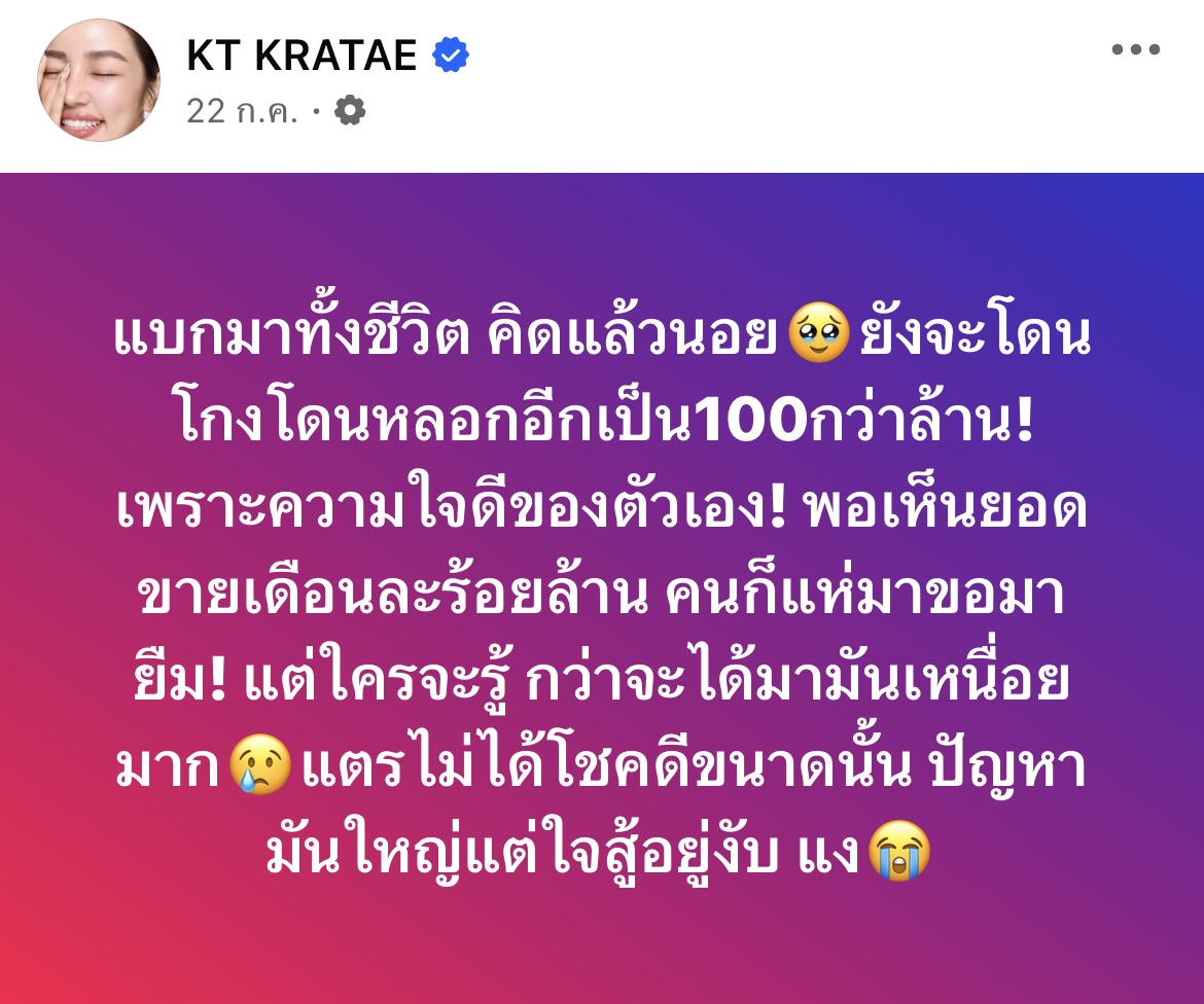 ย้ำ! เรื่องโดนโกงร้อยล้านก่อนหน้านี้ ไม่เกี่ยวกับคนในวงการ