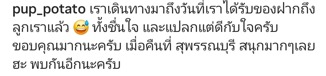 ปั๊บ โปเตโต้ ได้กล่าวถึงความรู้สึกนี้อย่างปลาบปลื้มว่า ตนรู้สึกซาบซึ้งใจอย่างมากกับความรักที่แฟนคลับมีให้มาตลอด และดีใจที่ได้เห็นความรักนั้นส่งผ่านมาถึงลูกชายอย่าง น้องฌาน ด้วย โดยระบุว่าของเหล่านี้จะส่งตรงไปถึง “เจ้าเด็ก” ที่บ้านอย่างแน่นอน ซึ่งภาพดังกล่าวได้สร้างความเอ็นดูให้กับผู้ที่ได้เห็นเป็นอย่างมาก จนมีแฟนคลับและคนในวงการเข้ามาคอมเมนต์แสดงความยินดีและแซว พ่อปั๊บ ว่าตอนนี้มีคู่แข่งคนสำคัญในการแย่งชิงความรักจากแฟน ๆ แล้ว!