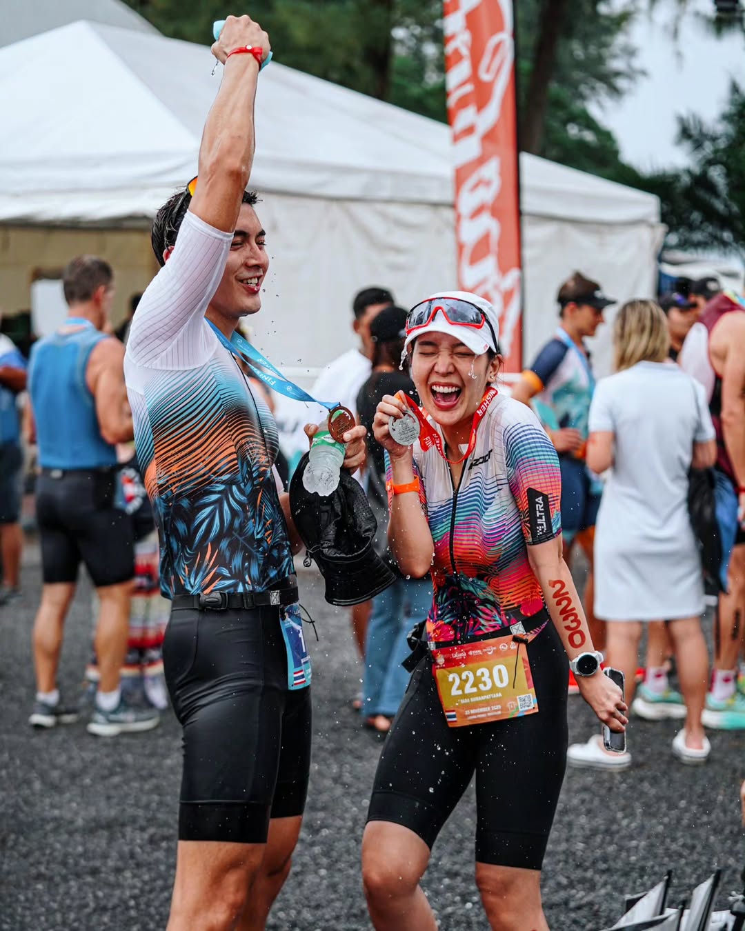 ขณะที่สาว “คุกกี้ ญดา” เองก็แสดงสปิริตนักกีฬาเต็มร้อย สู้สุดใจจนเข้าเส้นชัยสำเร็จเช่นกัน! ภาพฉลองชัยชนะที่ทั้งคู่สาดน้ำใส่กันด้วยความปิติที่เส้นชัย เป็นเครื่องยืนยันว่าการออกกำลังกายร่วมกัน ทำให้ความรักครั้งนี้ยิ่งแข็งแกร่ง!