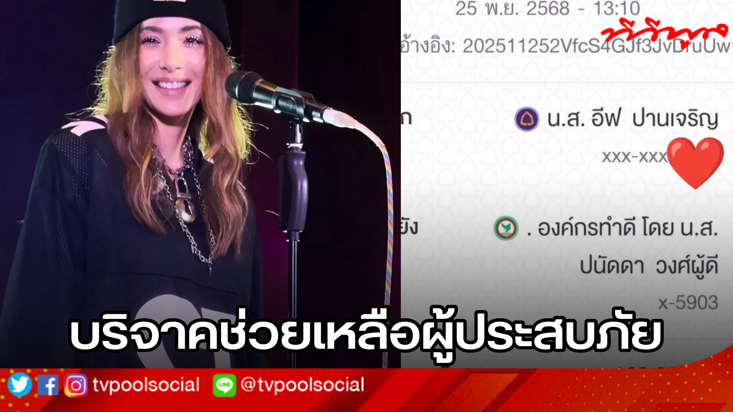 อีฟ ปานเจริญ ก็ได้บริจาคเงินช่วยเหลือผู้ประสบภัยน้ำท่วมผ่าน องค์กรทำดีขอบ บุ๋ม ปนัดดา พร้อมได้โพสต์แคปชั่นว่า “คงไม่ได้เพียงพอที่จะไปช่วยให้บรรเทาอะไรได้ค่ะแต่ขอสมทบไปด้วยคนค่ะ ขอให้ความเดือดร้อนลดลาลงโดยด่วนและขอให้พี่น้องภาคใต้และอาสาสมัครปลอดภัยกันทุกท่านนะคะ มีหัวใจตรงนี้หนึ่งดวงที่คอยติดตามและส่งความห่วงใยให้อยู่นะคะ”