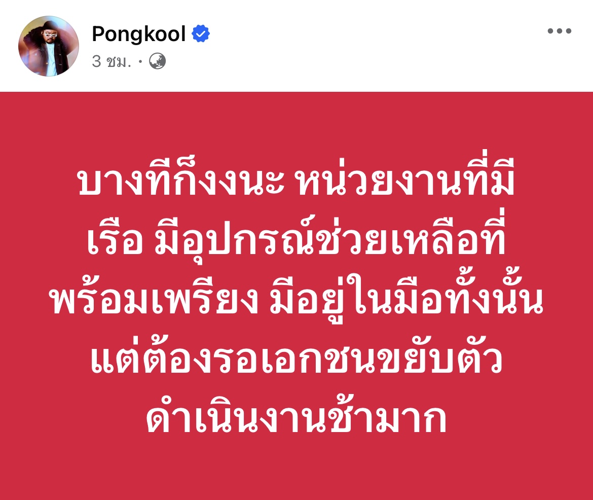 กำลังเป็นประเด็นร้อนกลางวิกฤตน้ำท่วมเลยทีเดียว เมื่อศิลปินเสียงอบอุ่นอย่าง ป๊อบ ปองกูล ออกมาเคลื่อนไหวผ่านเฟซบุ๊กส่วนตัว โพสต์ข้อความแรงตั้งคำถามถึงการทำงานของบางหน่วยงาน ระบุทำนองว่า…