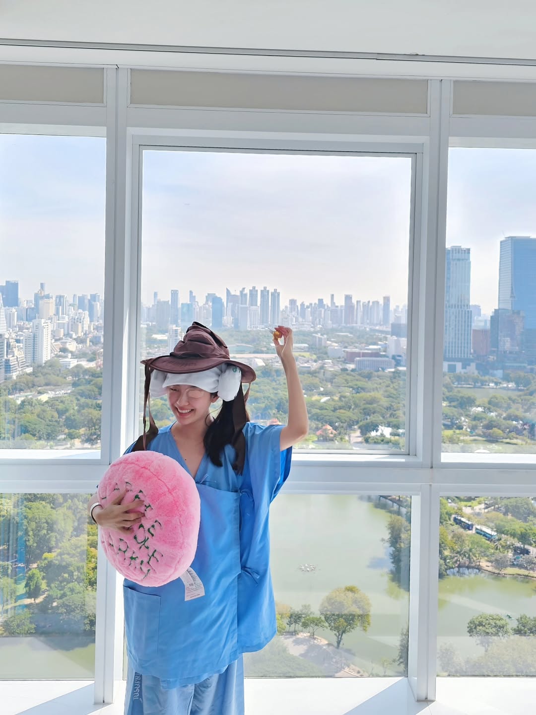 ในช่วงนี้ อดีตพิธีกรรายการสตรอเบอรี่ชีสเค้ก จึงต้องทุ่มเทให้กับการ ทำกายภาพบำบัด อย่างเข้มข้น ทั้งการฝึกเดิน การทรงตัว และการฝึกใช้สายตาภายใต้การดูแลของคณะแพทย์อย่างใกล้ชิด โดยเธอเผยความรู้สึกหลังนำเนื้องอกก้อนใหญ่ออกไปว่า “เนื้องอกชิ้นใหญ่ที่เอาออกไปรู้สึกโล่งสบายหัวขึ้นนะ แต่จะโหวง ๆ ในหัวหน่อย น่าจะต้องรอให้สมองกลับมาฟูเต็มเหมือนเดิม”