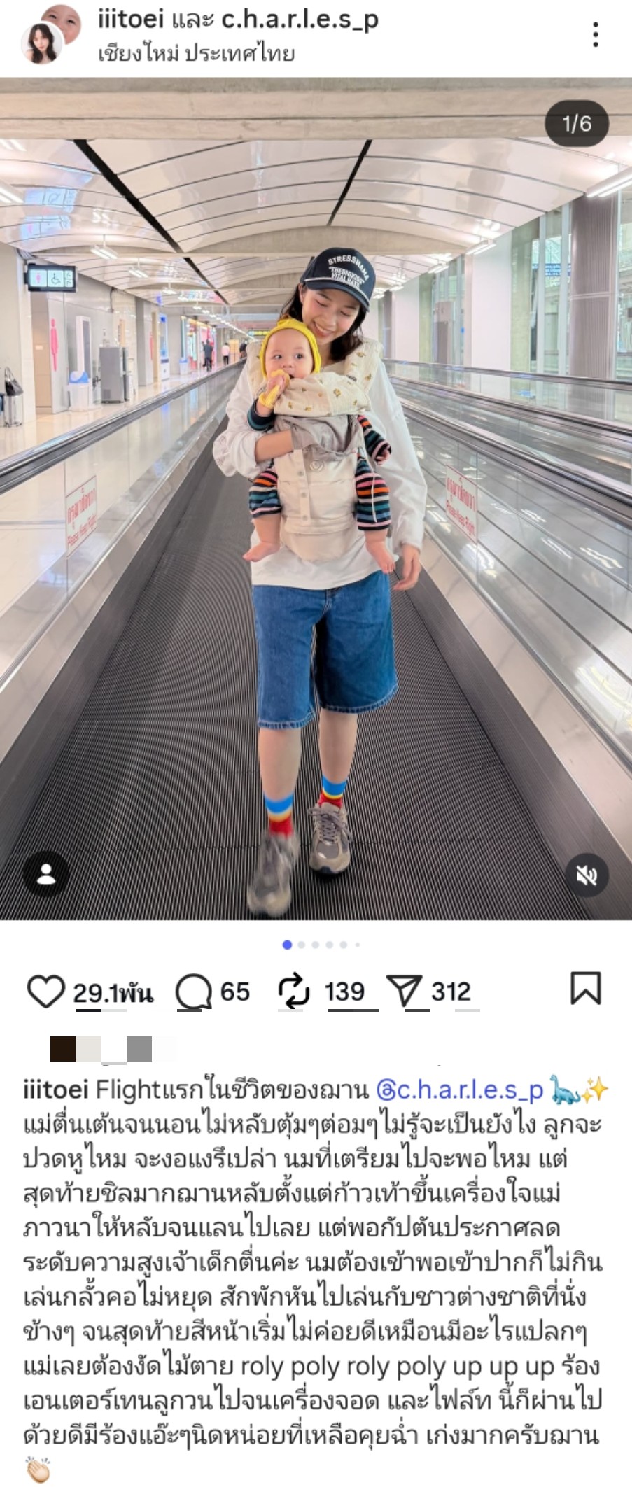 “Flight แรกในชีวิตของฌาน @c.h.a.r.le.s_p แม่ตื่นเต้นจนนอนไม่หลับตุ้มๆ ต่อมๆ ไม่รู้จะเป็นยังไง ลูกจะปวดหูไหม จะงอแงรึเปล่า นมที่เตรียมไปจะพอไหม” แม่เตยเล่าด้วยความรู้สึกที่เข้าใจหัวอกคนเป็นแม่