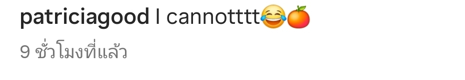 ​ความน่ารักพุ่งปรี๊ดเมื่อแพทริคเผยสีหน้าสุดฮาตั้งแต่ต้นจนจบ ก่อนจะปิดท้ายด้วยเสียงหัวเราะคิกคัก ทำให้ชาวเน็ตต่างพากันเข้ามากดไลก์และคอมเมนต์อย่างท่วมท้น ซึ่งหนึ่งในคอมเมนต์ที่ถูกใจมากที่สุดก็คือจากคุณแม่แพทริเซียเองที่ระบุว่า “I cannottt” (ฉันไม่ไหวแล้ว!) พร้อมอิโมจิหัวเราะและผลส้ม
