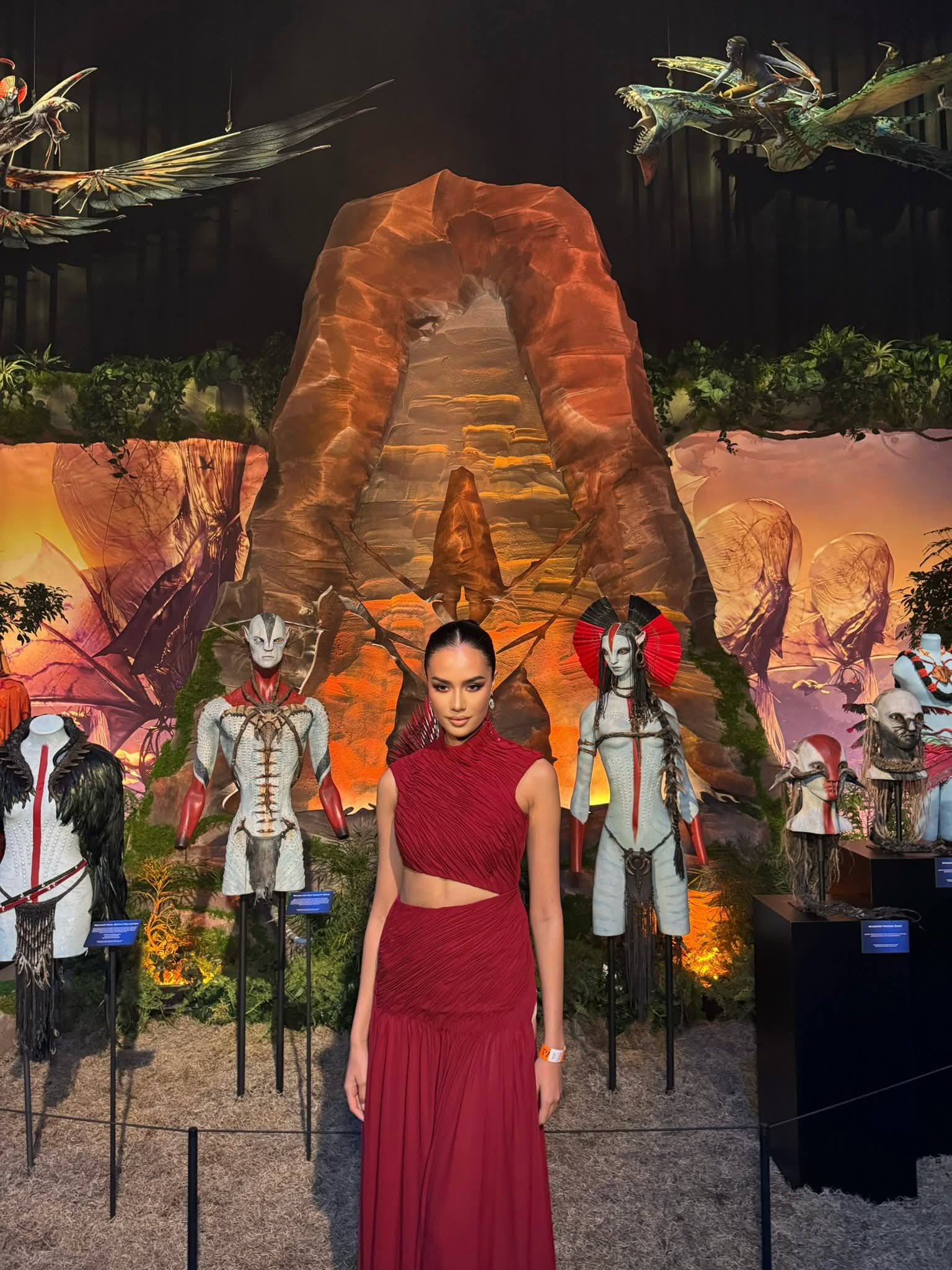 โดยในภาพจะเห็นเธอโพสท่าคู่กับหุ่นโมเดลชาวนาวี และฉากต้นไม้แห่งจิตวิญญาณ (Tree of Souls) ได้อย่างมืออาชีพ อินเนอร์นางพญามาเต็ม สมกับตำแหน่งตัวแทนสาวไทย เรียกได้ว่าสวยเด่นไม่จมไม่หาย ท่ามกลางบรรยากาศสุดล้ำของงาน