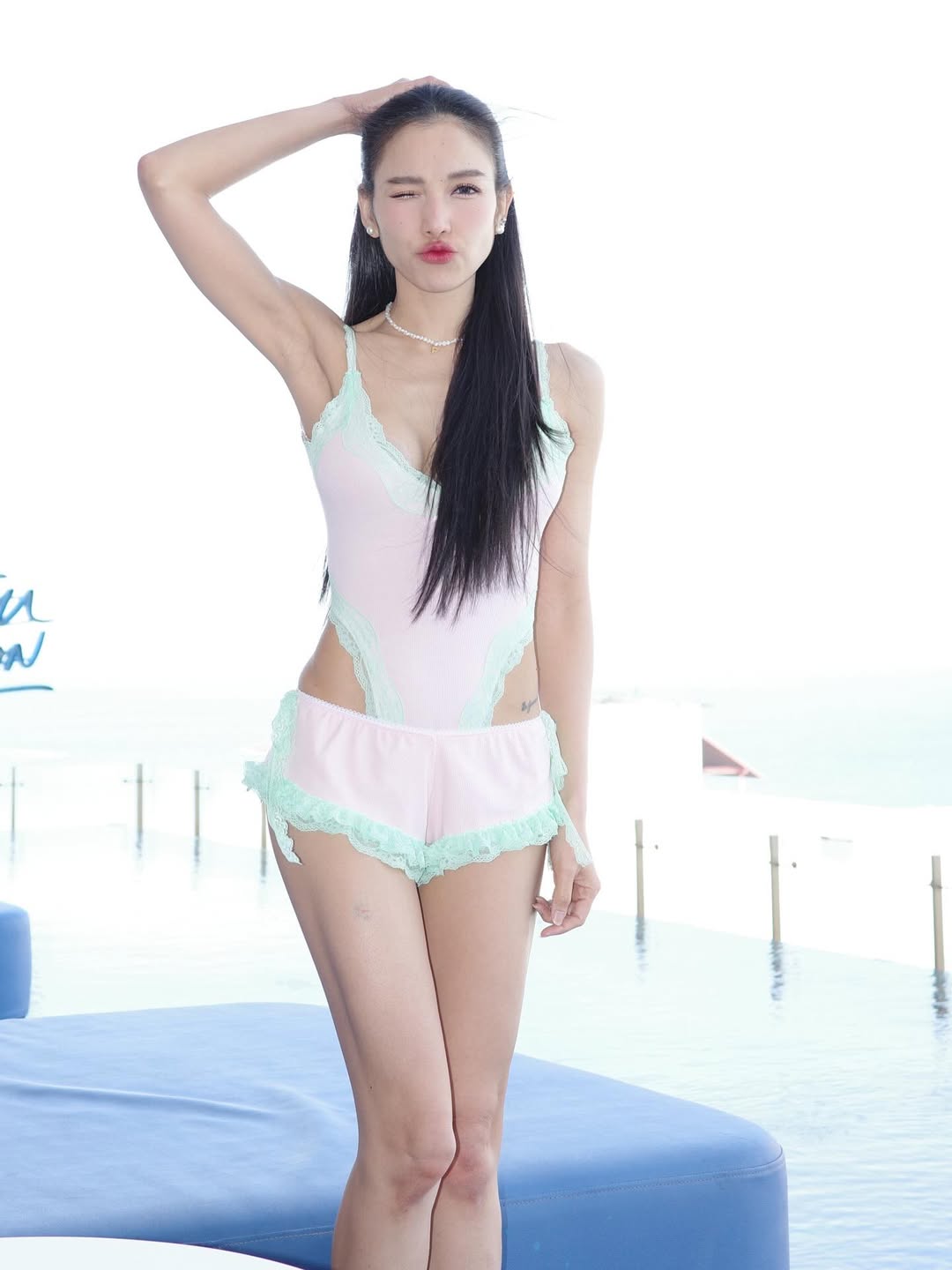 งานนี้ “แม่แพท” ไม่ทำให้ผิดหวัง จัดเต็มแฟชั่นชุดว่ายน้ำกึ่งชุดนอนลูกไม้สีชมพูพาสเทลตัดขอบเขียวสุดละมุน อวดหุ่นเพรียวบางและผิวขาวออร่าท้าแดด โพสท่าอินเนอร์นางแบบมาเต็ม ทั้งวิ้งค์ตา ทั้งบิดเอวเอส ทำเอาแฟนคลับกดไลก์แทบไม่ทัน