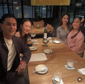 ในภาพที่สงกรานต์เผยผ่านโซเชียล เป็นโมเมนต์มื้อค่ำบรรยากาศสบาย ๆ ที่ทุกคนยิ้มแย้ม นั่งร่วมโต๊ะเดียวกันอย่างอบอุ่น ซึ่งนับว่าเป็นภาพครอบครัวที่หลายคนไม่ค่อยเห็นบ่อยนัก