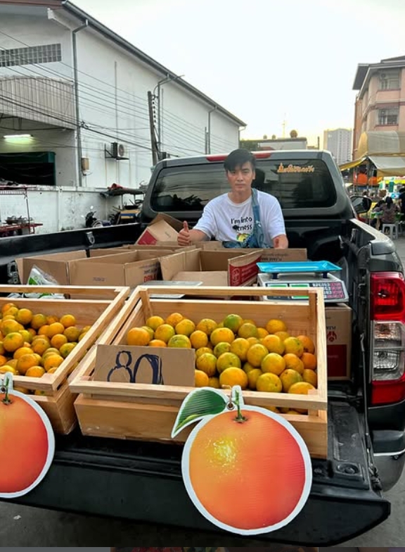 ล่าสุด โกสินทร์ ราชกรม ทำเอาแฟนๆ ใจฟูอีกครั้ง เมื่อเจ้าตัวโพสต์ภาพตอนที่ไปนั่งท้ายรถกระบะขายส้มฝางริมถนนแบบชิลๆ พร้อมทั้งเขียนข้อความว่า “อุดหนุนส้มฝางของอ้ายด้วยนะครับ”