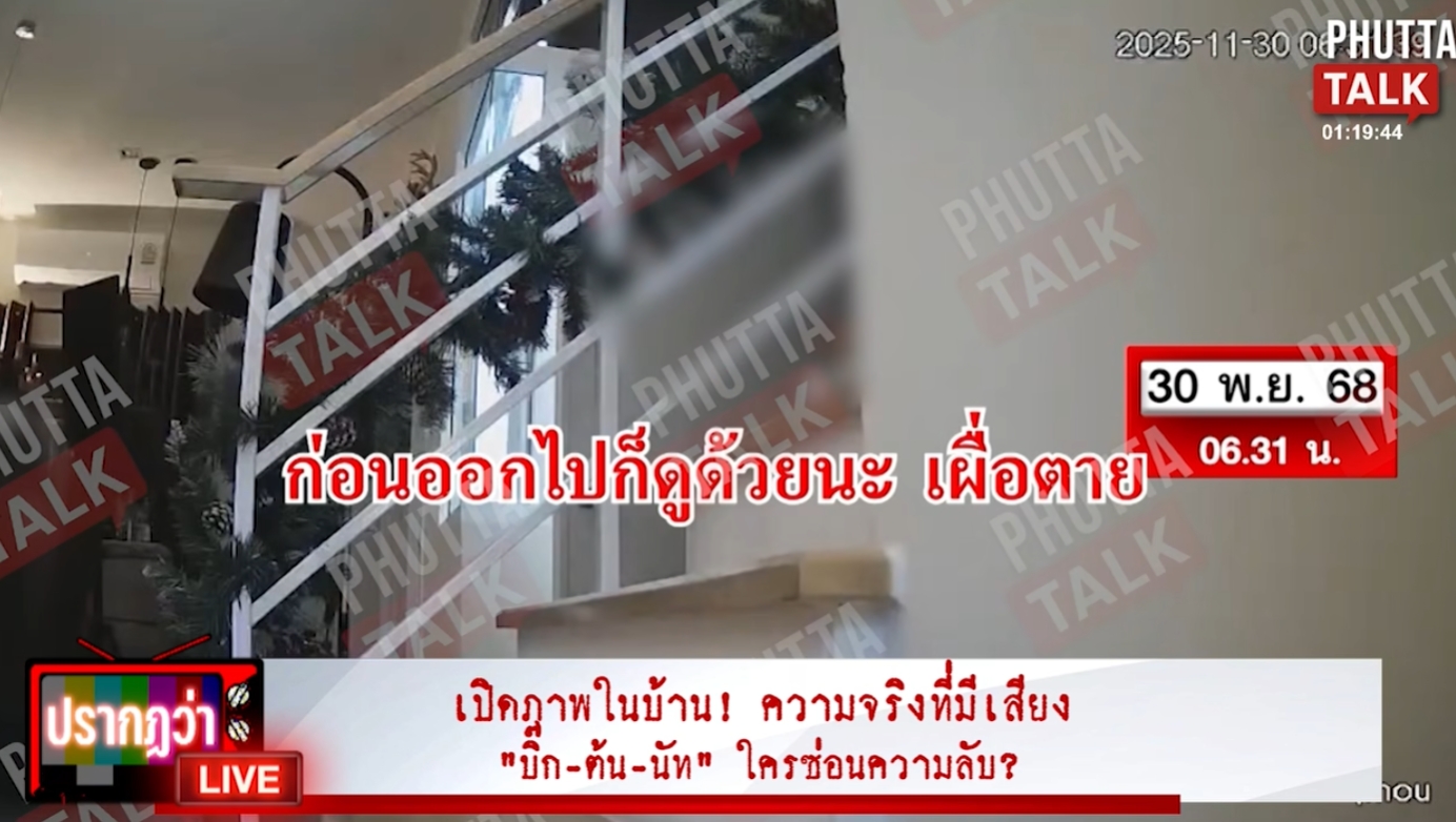 ทั้งนี้ความคืบหน้าล่าสุด รายการพุทธทอลค์ ซึ่งดำเนินรายการโดย พุทธ อภิวรรณ และ ไอซ์ สารวัตร ผู้ประกาศข่าวชื่อดัง โดยในรายการได้เปิดเผยคลิปวงจรปิดภายในบ้านเมื่อช่วงเช้าเวลา 06.24 น. ของวันที่ 30 พ.ย.ที่ผ่านมา บริเวณโต๊ะอาหารชั้นล่างของบ้าน ซึ่งเหลือเพียง นัทปง , บิ๊ก และ ต้น โดยจากภาพวงจรปิดได้มีเสียงคำพูดของ บิ๊ก พูดขึ้นมาว่า “นอนไม่หลับเลยที่นี่ กินยาตายแล้วมั้งพี่ต้น” เสียงนายต้นตอบกลับมาว่า “ใช่”