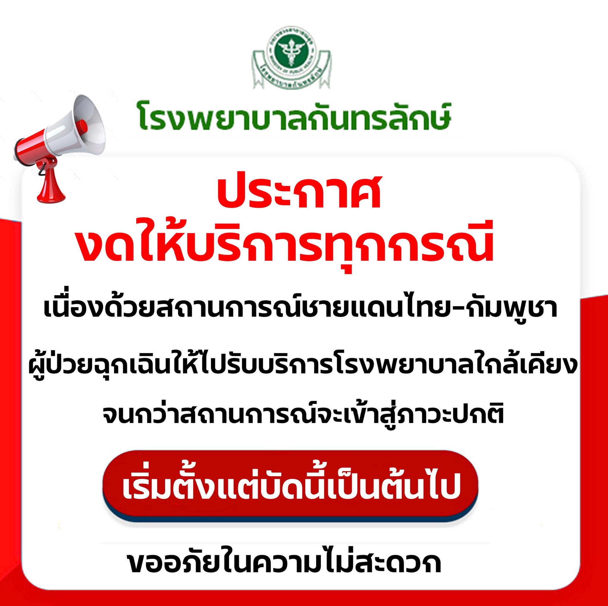 ทั้งนี้ความคืบหน้าล่าสุดถึงสถานการณ์ที่เกิดขึ้น ทาง โรงพยาบาลกันทรลักษ์ ประกาศงดให้บริการทุกกรณี เนื่องด้วยสถานการณ์ชายแดนไทย-กัมพูชา ผู้ป่วยฉุกเฉินให้ไปรับบริการโรงพยาบาลใกล้เคียง จนกว่าสถานการณ์จะเข้าสู่ภาวะปกติ เริ่มตั้งแต่บัดนี้เป็นต้นไป ขออภัยในความไม่สะดวก