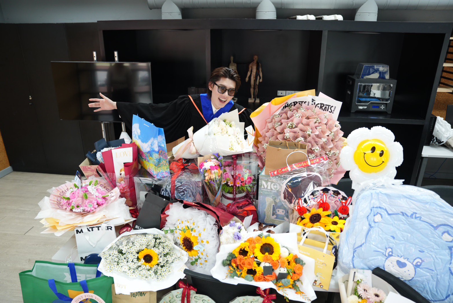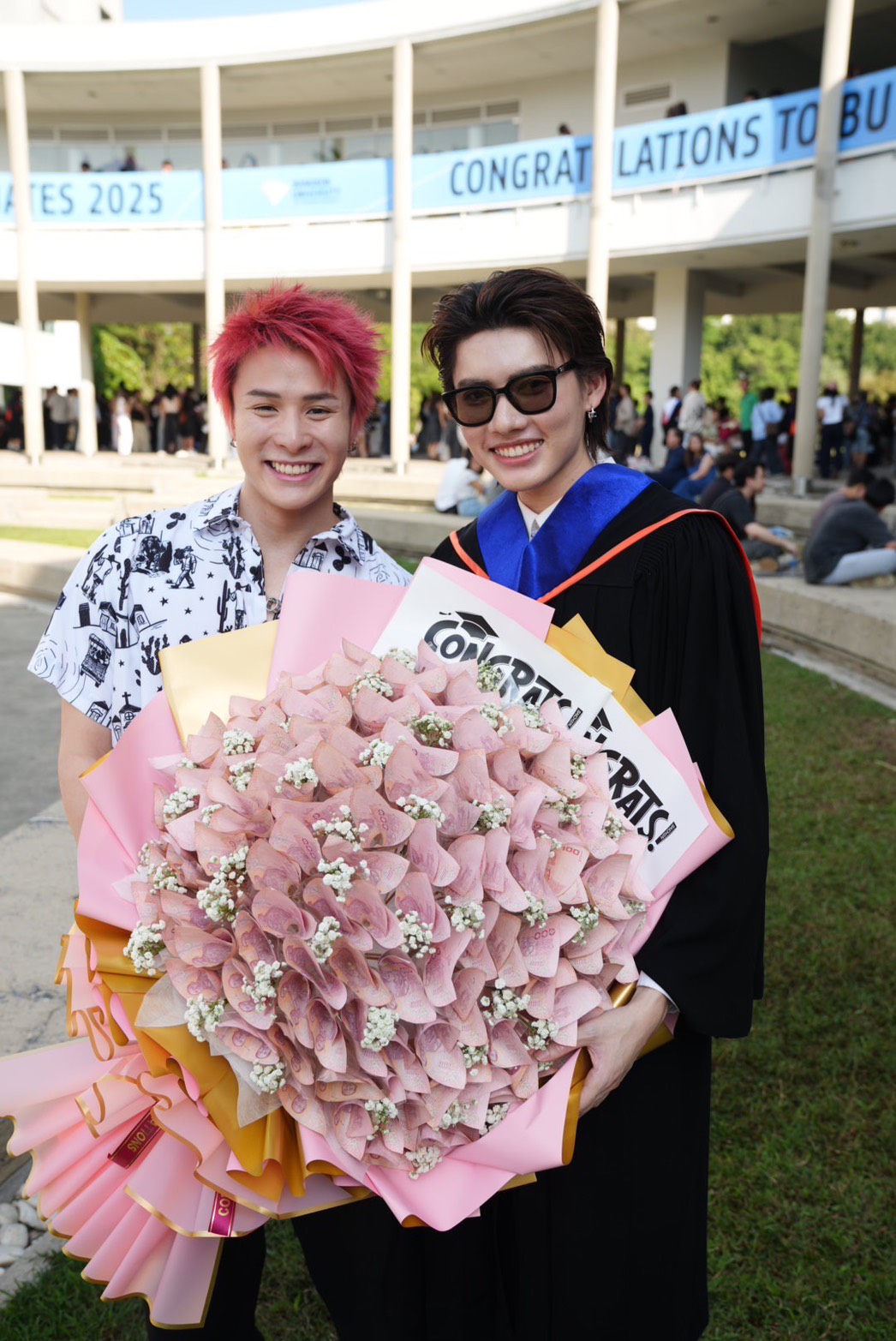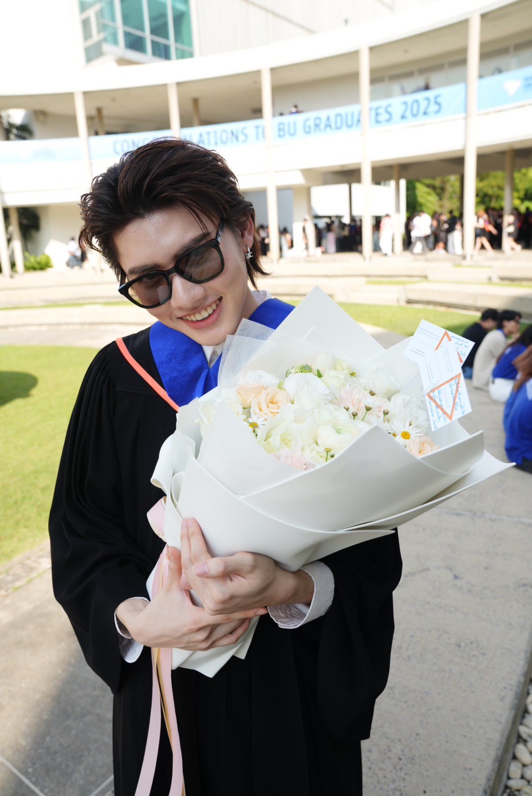 ซึ่งท๊อปเทนเผยถึงความรู้สึกหลังรับปริญญาว่า “ดีใจที่สามารถทำตามเป้าหมายตามที่ตั้งใจ พร้อมเตรียมเดินหน้าลุยงานในวงการบันเทิงอย่างเต็มที่มากขึ้น ทั้งงานการแสดงและโปรเจกต์ใหม่ๆ ที่กำลังรออยู่” ซึ่งบรรยากาศภายในงานอบอวลด้วยความปลื้มปิติ รอยยิ้มของความภาคภูมิ และความอบอุ่นจาก พี่ฉอด สายทิพย์ , พี่เอส วรฤทธิ์ , ไมเคิล เกียรติศักดิ์ , นัท ศุภณัฐ , ป๊อป ภัทรพล , ซอนญ่า ศรัณย์ภัทร์ และแฟนคลับที่เดินทางมาร่วมยินดี เมื่อวันที่ 8 ธันวาคม 2568 ที่ผ่านมา