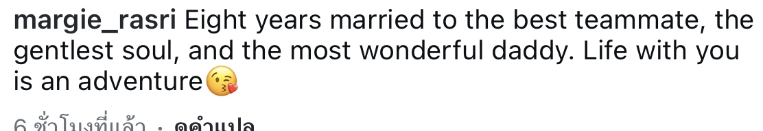 โดย “มาร์กี้ ราศรี” ได้โพสต์โมเมนต์ภาพคู่ พร้อมระบุแคปชั่นว่า “8 ปีในการแต่งงาน สู่การเป็นเพื่อนร่วมทีมที่ดีที่สุด จิตใจอ่อนโยนที่สุด และเป็นคุณพ่อที่วิเศษที่สุด ชีวิตที่มีกับคุณคือการผจญภัย“