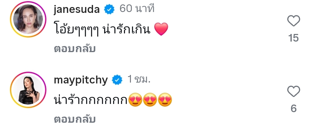 หลังจากโพสต์ภาพนี้ไปไม่นาน เหล่าเพื่อนพ้องคนสนิทในวงการบันเทิงและแฟนคลับต่างก็เข้ามากดไลก์และคอมเมนต์แสดงความรักและอวยพรวันเกิดให้กับ “เต้ บรม” และชื่นชมในความน่ารักของทั้งคู่อย่างล้นหลาม อาทิ นางเอกสาวสวยอย่าง “เจนสุดา ปานโต” (Janesuda) ที่เข้ามาคอมเมนต์สั้นๆ แต่ได้ใจความว่า “โอ้ยยยยยยย น่ารักเกิน 💖” และนักแสดงสาวแซ่บ “เมย์ พิชญ์นาฏ” (Maypitchy) ที่เข้ามาคอมเมนต์ด้วยอิโมจิหัวใจรัวๆ ว่า “น่ารักกกกกก 🥰🥰🥰🥰” ซึ่งแสดงให้เห็นว่าเพื่อนๆ ต่างก็อินและชื่นชมในความรักของทั้งคู่ไม่แพ้กัน