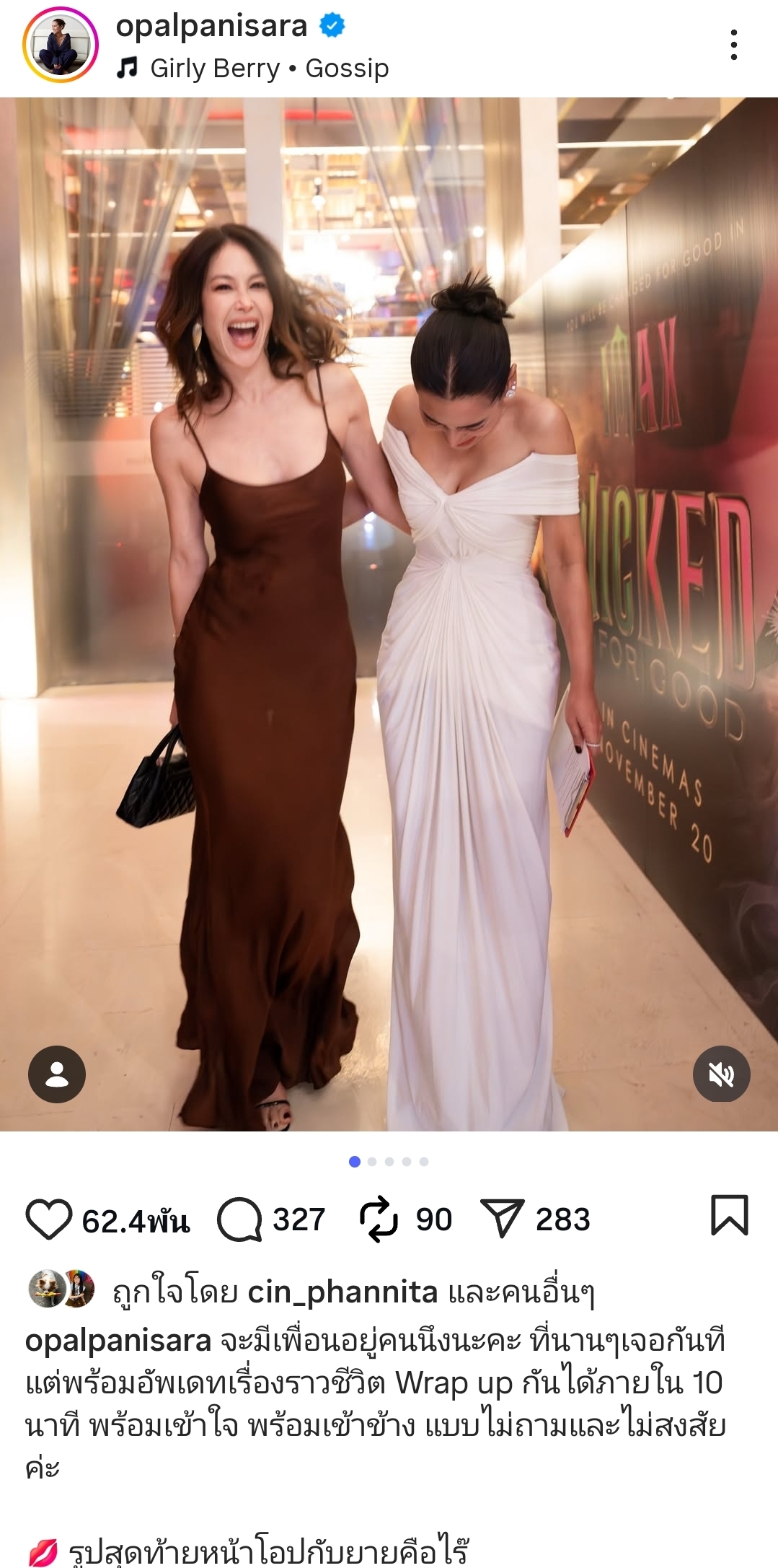 หลังเสร็จสิ้นภารกิจ! โอปอล์ ปาณิสรา ไม่รอช้า รีบโพสต์ภาพคู่กับ พอลล่า พร้อมแคปชั่นสุดซึ้งที่อ่านแล้วรู้เลยว่าหมายถึงเรื่องอะไร! เธอระบุว่า “จะมีเพื่อนอยู่คนนึงนะคะ ที่นานๆ เจอกันที แต่พร้อมอัพเดทเรื่องราวชีวิต Wrap up กันได้ภายใน 10 นาที พร้อมเข้าใจ พร้อมเข้าข้าง แบบไม่ถามและไม่สงสัยค่ะ” ซึ่งคำว่า “พร้อมเข้าใจ พร้อมเข้าข้าง แบบไม่ถามและไม่สงสัย” นี้เองที่ถูกโยงไปถึงสถานการณ์ดราม่าที่พอลล่ากำลังเผชิญอยู่