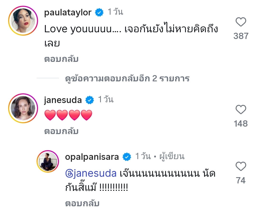 ด้าน พอลล่า ก็รีบเข้ามาคอมเมนต์ตอบกลับด้วยความรักว่า “Love youuuuu…. เจอกันยังไม่หายคิดถึงเลย”