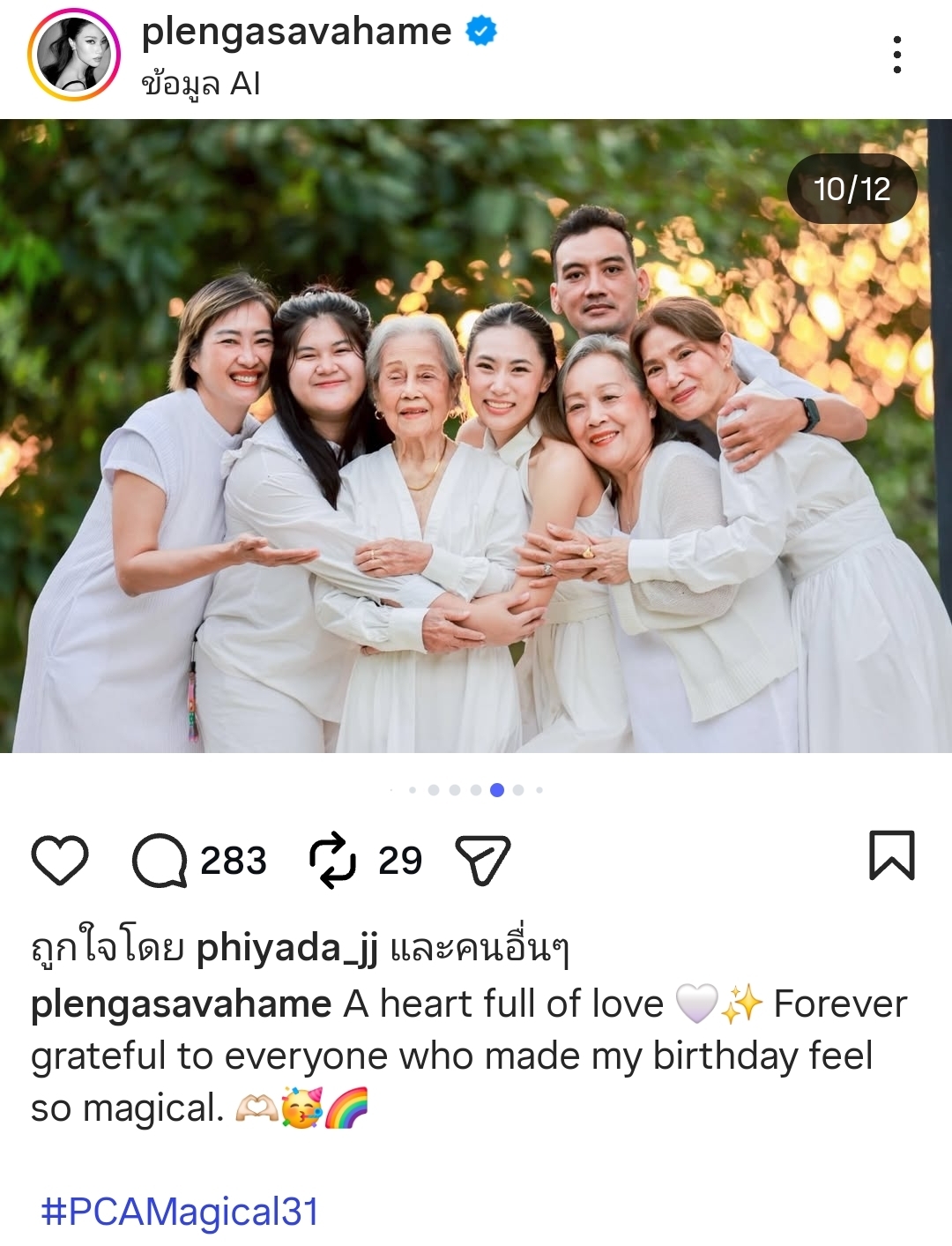 ซึ่งแปลเป็นภาษาไทยได้ว่า “หัวใจที่เปี่ยมด้วยความรักตลอดไป ขอบคุณทุกคนที่ทำให้วันเกิดของฉันรู้สึกวิเศษเหลือเกิน #PCAMagical31” เป็นการยืนยันว่าการใช้ชีวิตในวัย 31 ปีของเธอนั้นเต็มไปด้วยพลังบวกและคนรักมากมาย!