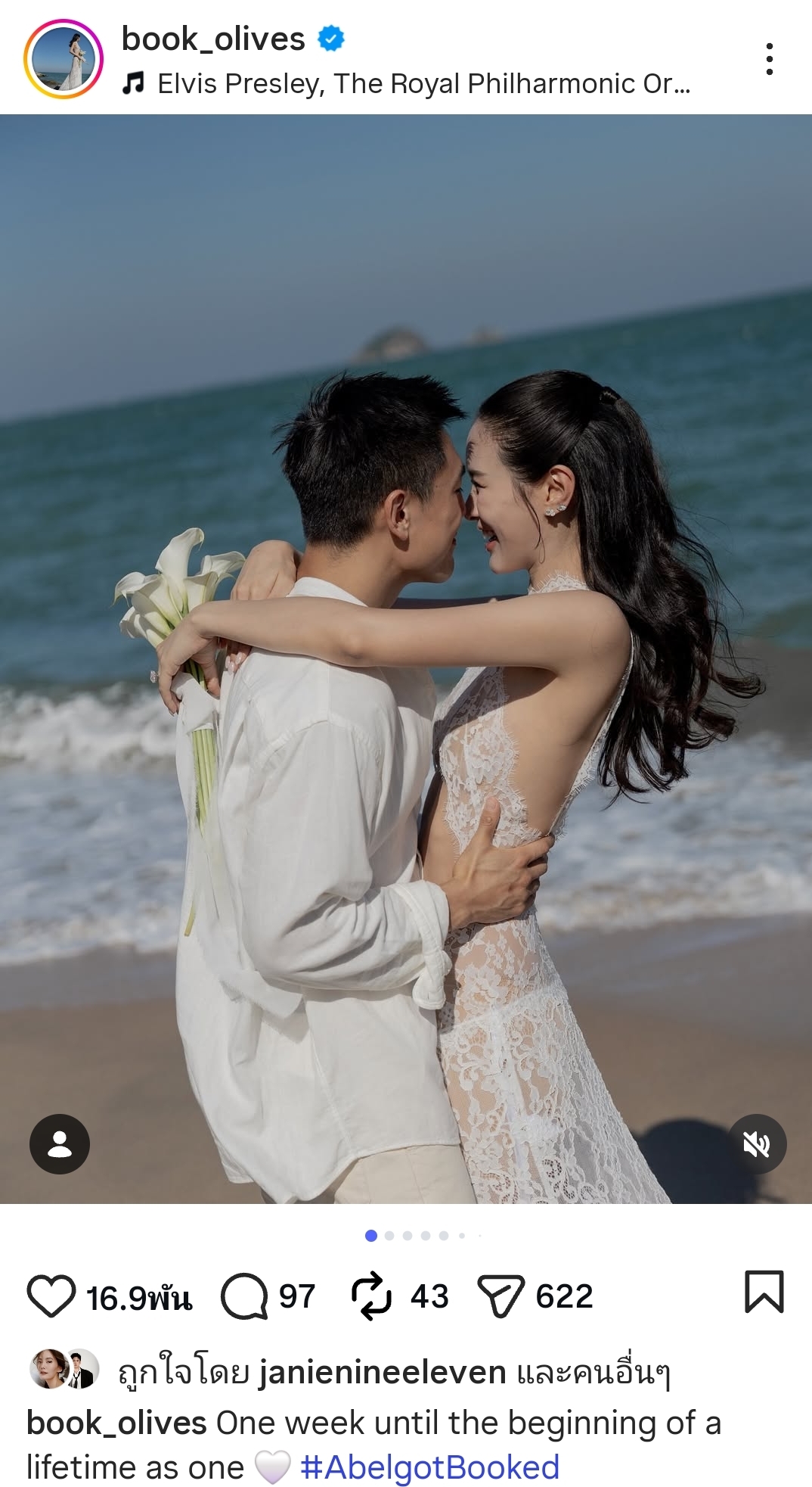 นอกจากนี้ “บุ๊ค” ยังได้เขียนแคปชั่นสุดซึ้งที่ทำเอาเพื่อนๆ และแฟนๆ แห่เข้าไปแสดงความยินดีอย่างเนืองแน่นว่า “One week until the beginning of a lifetime as one 🤍 #AbelgotBooked” เป็นการประกาศชัดเจนว่าอีกเพียงหนึ่งสัปดาห์เท่านั้น ทั้งคู่ก็จะจูงมือกันเข้าพิธีวิวาห์แล้ว งานนี้บอกเลยว่า “ยังโสด” ต้องหลบไป เพราะ “บุ๊ค Olives” กำลังจะกลายเป็นเจ้าสาวป้ายแดงอย่างสมบูรณ์แบบ!