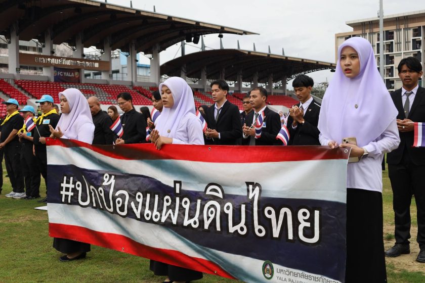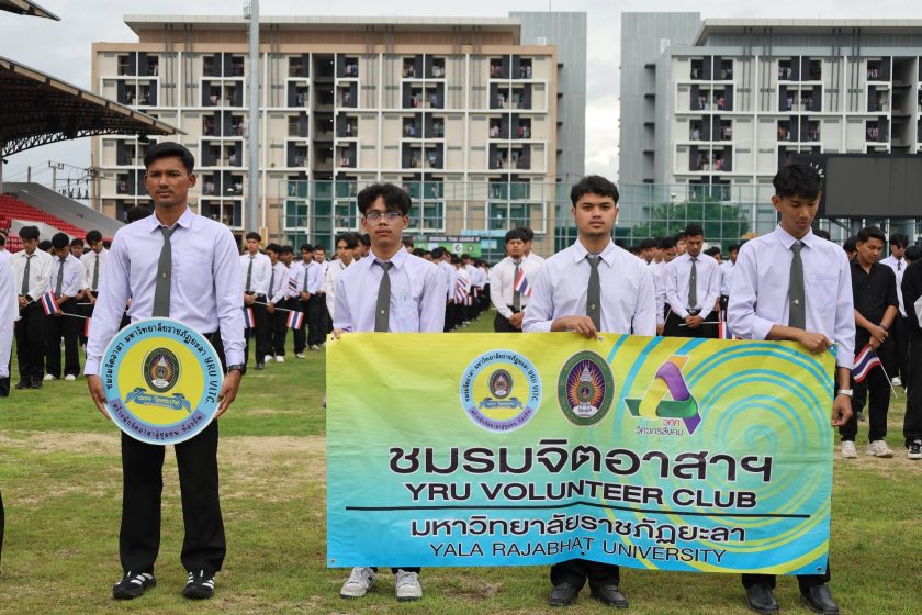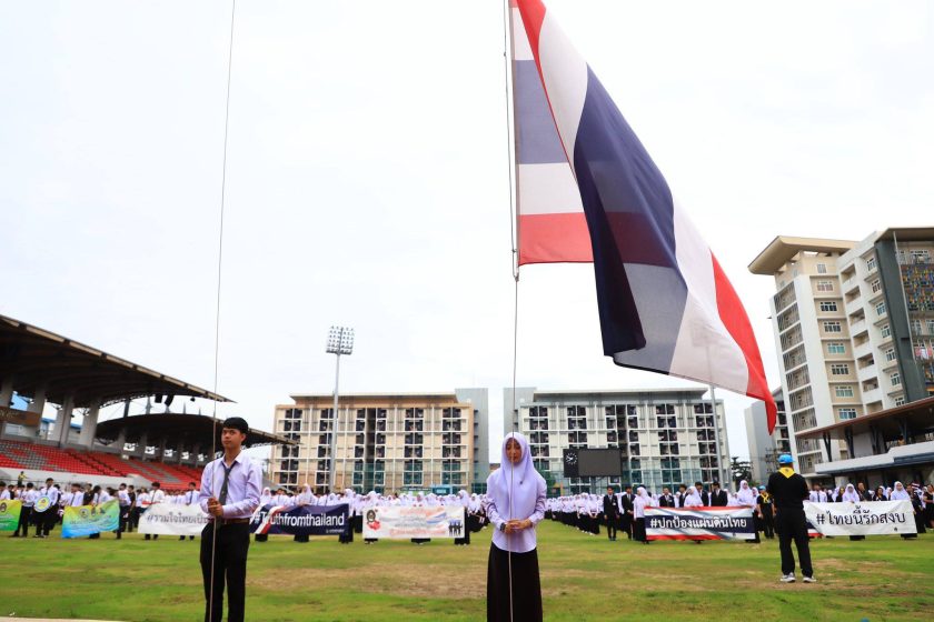 มรภ.ยะลา รวมพลังผู้บริหาร คณาจารย์ บุคลากร และนักศึกษา กว่า 3,800 คน ร่วมกิจกรรมเคารพธงชาติและร้องเพลงชาติไทย เพื่อปลูกฝังจิตสำนึกรักชาติ และส่งกำลังใจแก่ผู้ปฏิบัติหน้าที่พิทักษ์อธิปไตยของประเทศ