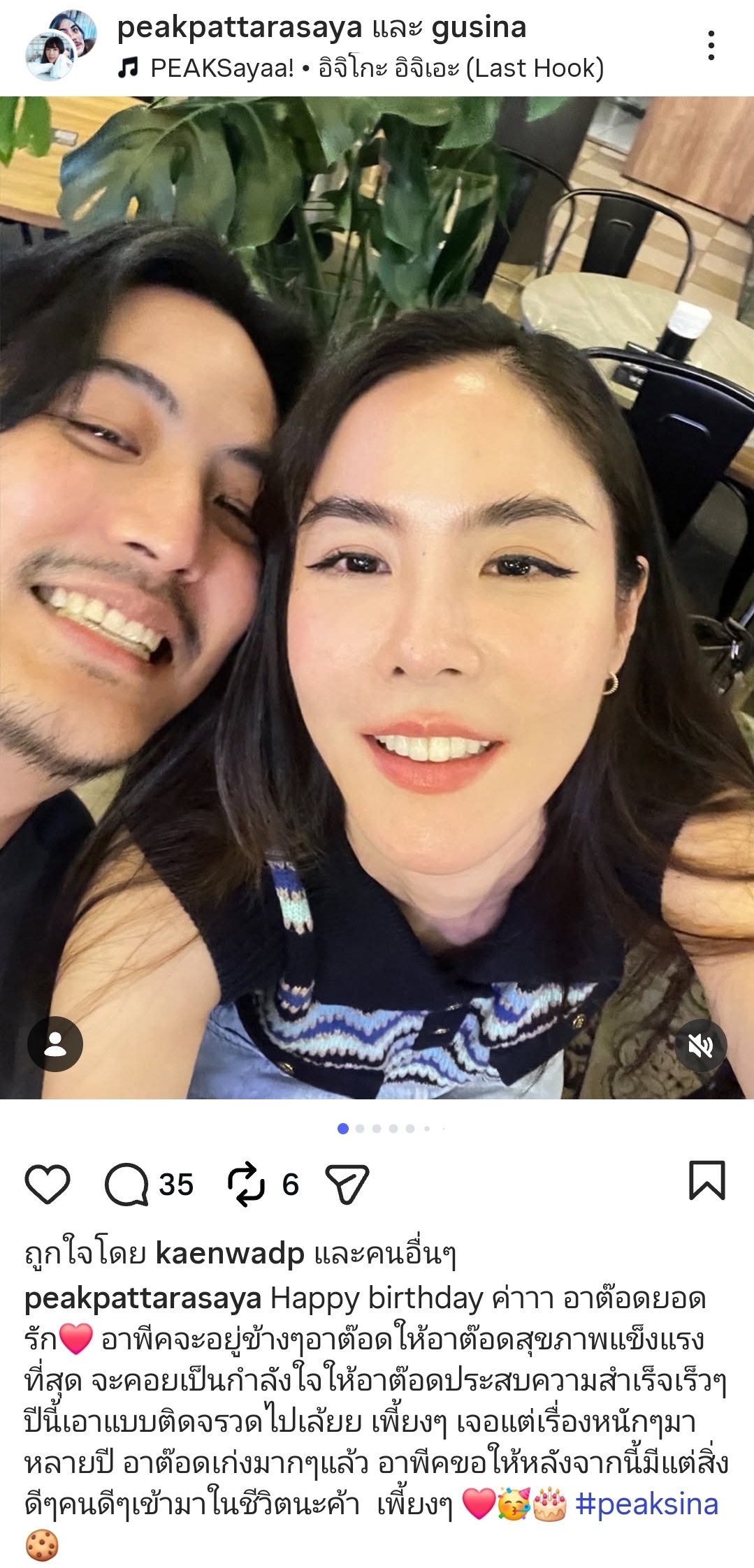 “Happy birthday ค่าาา อาต๊อดยอดรัก อาพีคจะอยู่ข้างๆอาต๊อดให้อาต๊อดสุขภาพแข็งแรงที่สุด จะคอยเป็นกำลังใจให้อาต๊อดประสบความสำเร็จเร็วๆ ปีนี้เอาแบบติดจรวดไปเล้ยย เพี้ยงๆ เจอแต่เรื่องหนักๆมาหลายปี อาต๊อดเก่งมากๆแล้ว อาพีคขอให้หลังจากนี้มีแต่สิ่งดีๆคนดีๆเข้ามาในชีวิตนะค้า เพี้ยงๆ #peaksina”