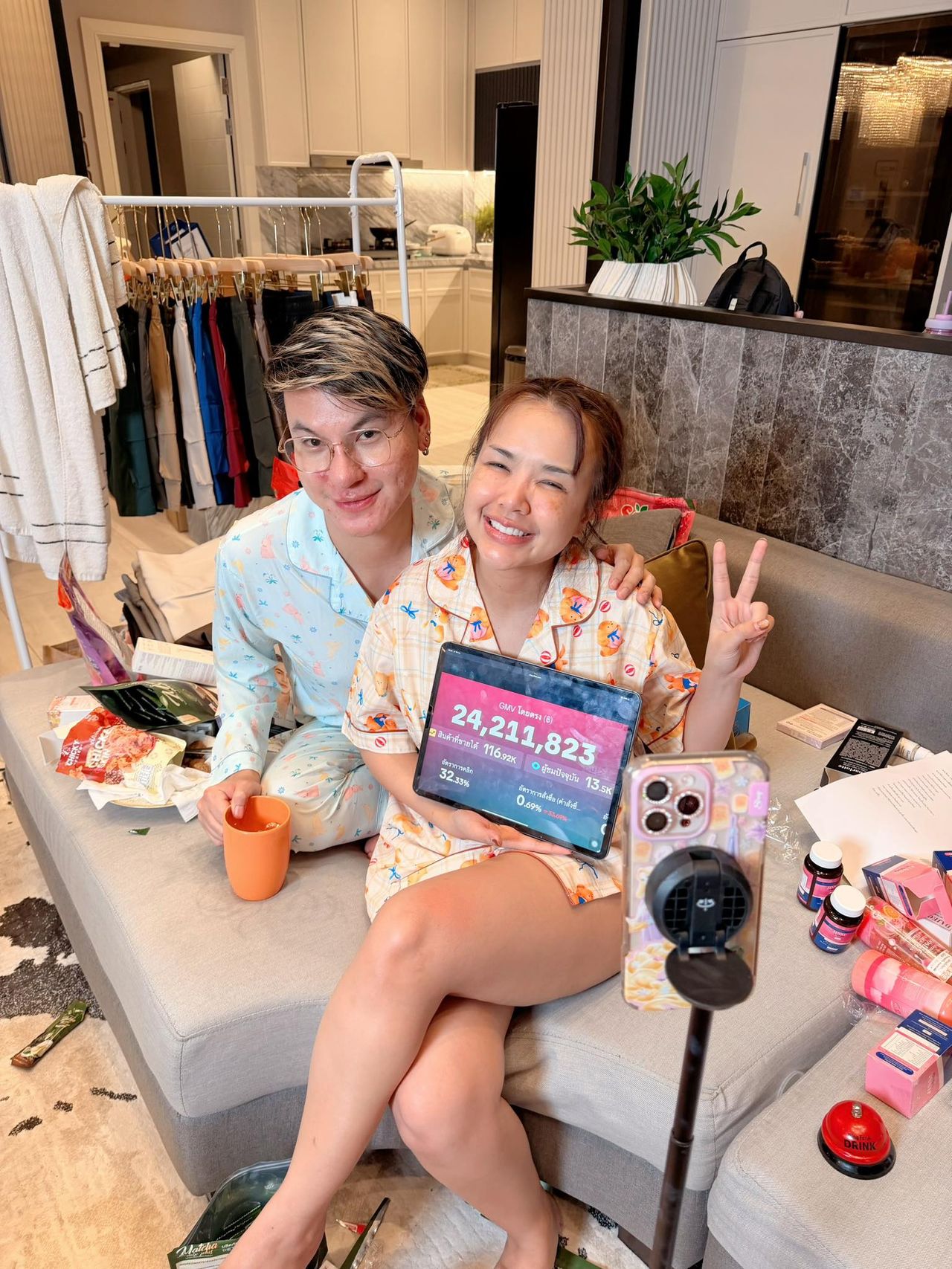 “จริงๆ บูมกับเจนน่ะ เราไม่ได้มาไลฟ์กันแบบนี้ตั้งแต่แรกอยู่แล้ว มันเกิดจากวันที่เพื่อนมีดราม่า เราเข้าไปให้กำลังใจเพื่อน แล้วคนติดเรา กลายเป็นมีบูม มีเจนนี่ มีพี่เท่ห์ ลูกค้าก็เข้ามา… ยืนยันว่าไม่ได้เกาเหลากัน บูมยังคุยกับเจนหลังบ้านตลอด”