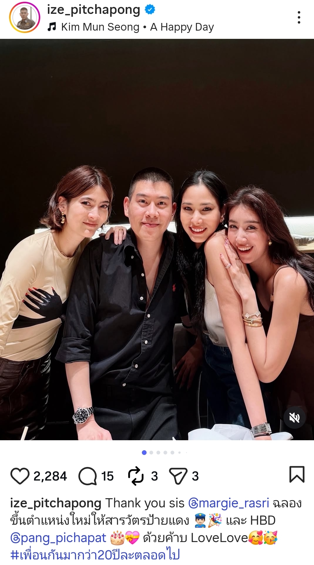 ​แถมล่าสุดยังเห็นภาพบรรยากาศสุดชื่นมื่น เมื่อก๊วนเพื่อนรักในวงการอย่างคุณแม่ลูกแฝด “มาร์กี้ ราศรี” และสาวแซ่บ “แพง ภิชาภัฏ” รวมตัวกันฉลองตำแหน่งใหม่ให้สารวัตรป้ายแดง มิตรภาพแน่นแฟ้นกว่า 20 ปีขนาดนี้ บอกเลยว่าทั้งเก่ง ทั้งหล่อ แถมเพื่อนรักยังรุมล้อมขนาดนี้ เอาอะไรมาฉุดก็ไม่อยู่แล้วค่ะสารวัตรขาาา!