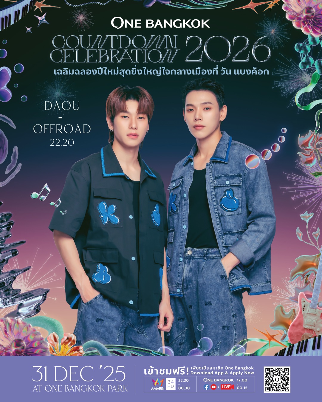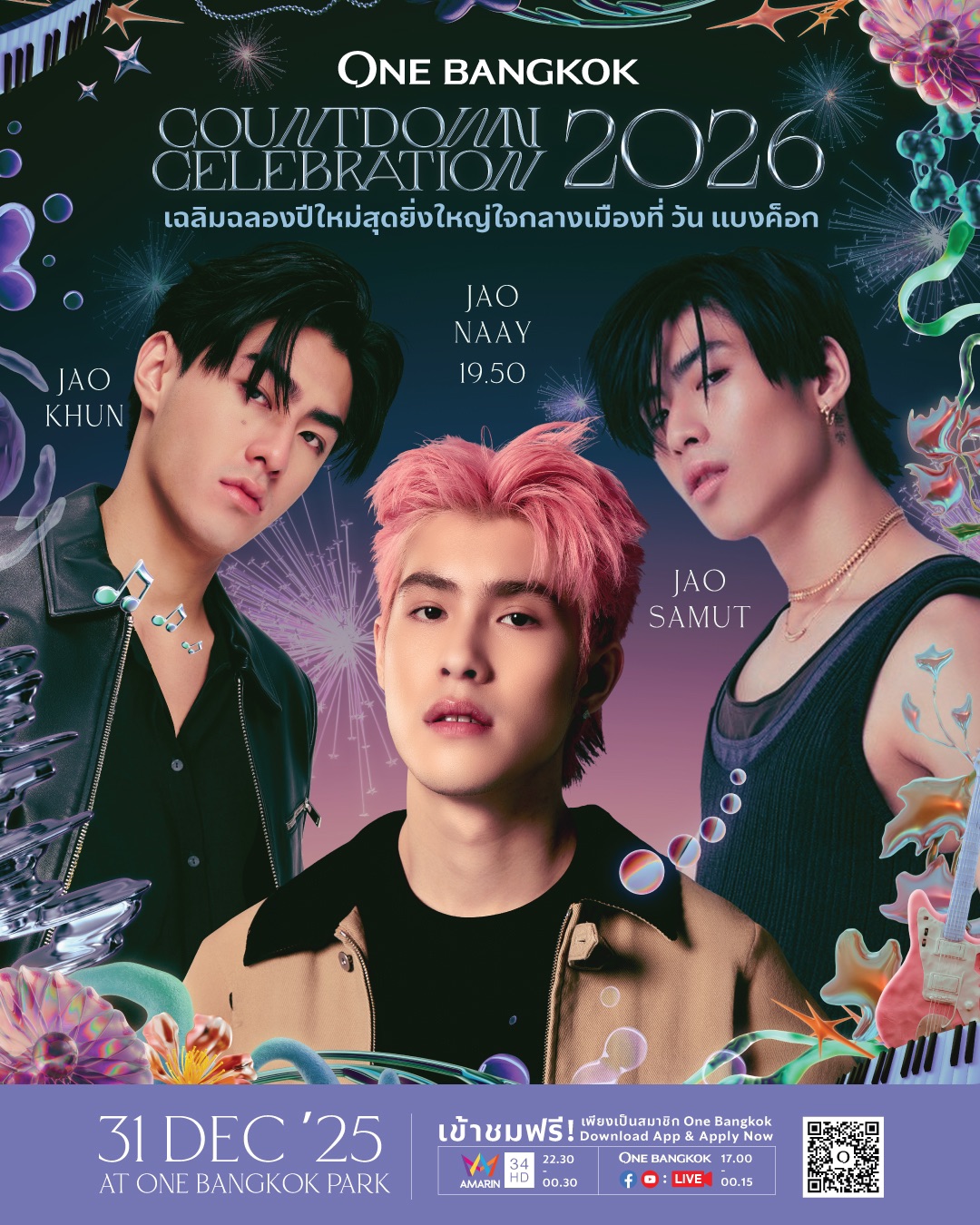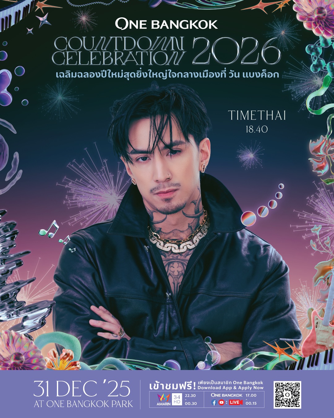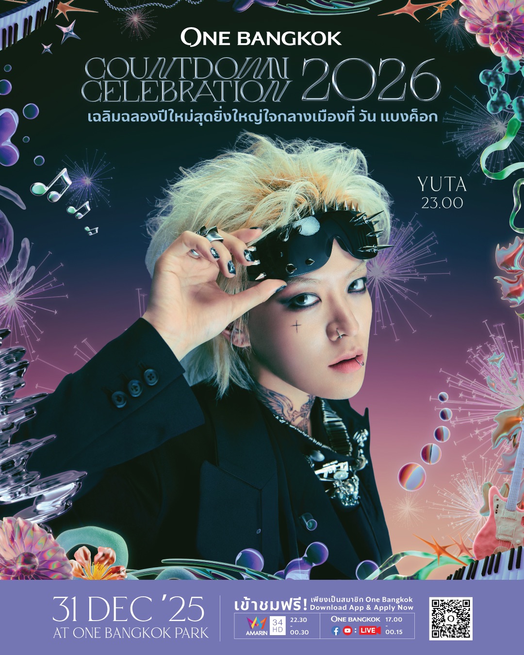 วัน แบงค็อก เตรียมสร้างประสบการณ์เฉลิมฉลองส่งท้ายปีเก่าต้อนรับปีใหม่กับ “One Bangkok Countdown Celebration 2026: The Empire of ONE” งานเคานต์ดาวน์สุดไอคอนิกใจกลางเมือง ก่อนเริ่มต้นศักราชแห่งความยิ่งใหญ่ของ “ปีม้าไฟ” สัญลักษณ์แห่งความมีชีวิตชีวา ความมุ่งมั่น การผจญภัย พร้อมรับกับทุกการเปลี่ยนแปลงที่ไร้ขีดจำกัด ตื่นตาตื่นใจกับเวทีกลาง ณ วัน แบงค็อก ปาร์ค ที่ตระหง่านเป็น “หอคอยแห่งอาณาจักร” พร้อมมอบความสนุกแบบ 360 องศา และพลาดไม่ได้กับการแสดงพิเศษจากสองศิลปินซูเปอร์สตาร์ระดับโลกจากเกาหลีอย่าง TAEYONG และ YUTA พร้อมกองทัพศิลปินไทยอีก 19 คน ที่มาร่วมเนรมิตค่ำคืนแห่งความทรงจำในวันที่ 31 ธันวาคม 2568 และจุดประกายความสุขสู่ปี 2569