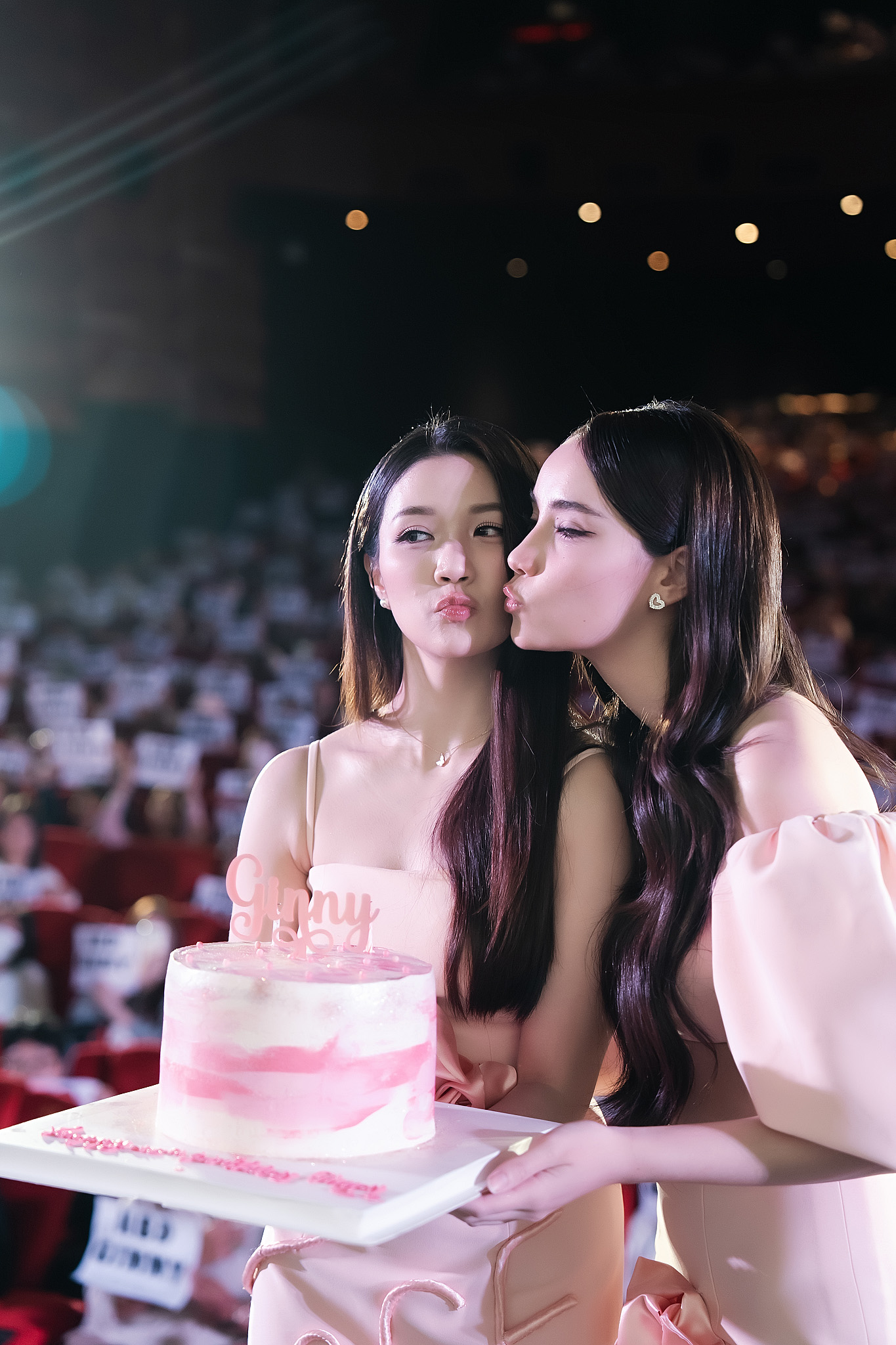 ส่วนช่วงไฮไลท์ของงานที่เรียกรอยยิ้มและน้ำตาไปพร้อมกัน คือเซอร์ไพรส์วันเกิดสุดอบอุ่นที่ทีมงานและแฟนคลับร่วมใจกันจัดให้กับจินนี่บนเวที เสียงเพลง Happy Birthday ที่ดังขึ้นท่ามกลางแสงไฟและเสียงปรบมือ ทำเอาเจ้าตัวกลั้นน้ำตาไว้ไม่อยู่ ก่อนจะกล่าวขอบคุณทุกคนด้วยความซาบซึ้ง ขณะที่เจน่ายืนเคียงข้างส่งรอยยิ้มและกอดให้กำลังใจ เป็นภาพที่ทำให้บรรยากาศเต็มไปด้วยความรักและความผูกพัน