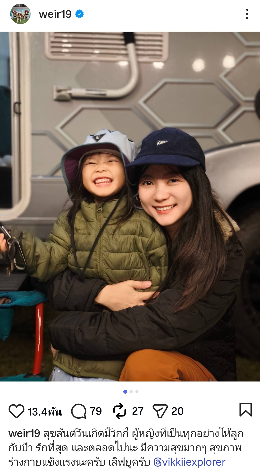 ​โดยหนุ่มเวียร์ได้โพสต์ภาพสุดละมุนของ “แม่วิกกี้” ที่ถ่ายคู่กับ “น้องวิริน” ลูกสาวตัวน้อยที่เป็นแก้วตาดวงใจ พร้อมระบุแคปชันที่อ่านแล้วต้องจิกหมอนว่า “สุขสันต์วันเกิดมี๊วิกกี้ ผู้หญิงที่เป็นทุกอย่างให้ลูก กับป๊า รักที่สุด และตลอดไปนะ มีความสุขมาก ๆ สุขภาพร่างกายแข็งแรงนะครับ เลิฟยูครับ”