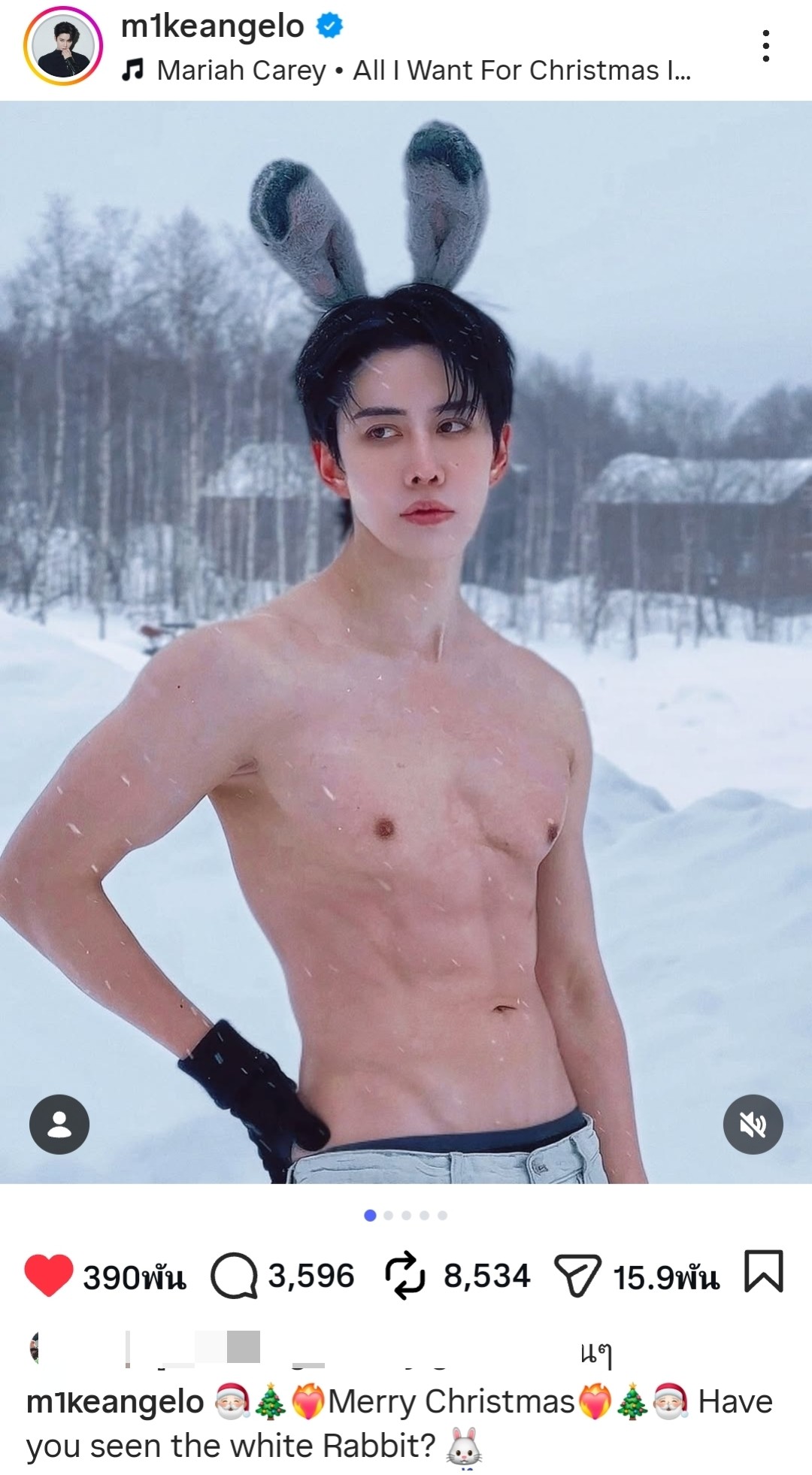 เกินเรื่องมากแม่! คริสต์มาสปีนี้ไม่ต้องรอซานต้าแล้วค่ะ เพราะ “ไมค์ พิรัชต์” จัดให้หนักๆ ยิ่งกว่าของขวัญชิ้นไหน! เมื่อเจ้าตัวโพสต์ภาพเซตใหม่ลงไอจีส่วนตัว เป็นภาพที่เจ้าตัวถอดเสื้อโชว์กล้ามท้องแน่นเปรี๊ยะท้าอากาศหนาวเหน็บ พร้อมพร็อพหูกระต่ายสุดมุ้งมิ้งที่ตัดกับความลีนของหุ่นแบบสุดๆ