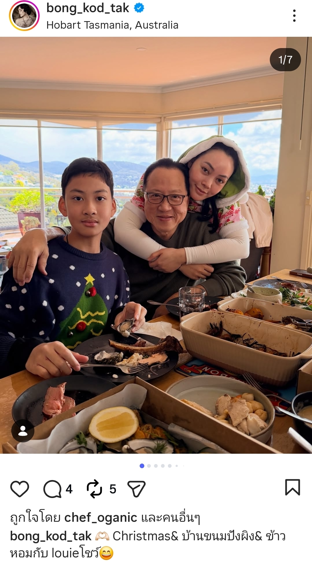 เรียกได้ว่าเป็นภาพที่เห็นแล้วต้องยิ้มตามกันทั้งโซเชียลเลยค่ะคุณขา! เมื่อคุณแม่คนสวยหุ่นสับ “ตั๊ก บงกช” ควงแขนสามีสุดที่รัก “เจ้าสัวบุญชัย เบญจรงคกุล” และลูกชายสุดที่รัก “น้องข้าวหอม” บินลัดฟ้าไปรับลมหนาวฉลองเทศกาลคริสต์มาสและปีใหม่กันถึงเมืองโฮบาร์ต รัฐแทสเมเนีย ประเทศออสเตรเลีย งานนี้แม่ตั๊กจัดเต็มความสดใสในชุด Grinch สุดน่ารัก แต่อ๊ะๆ จุดที่แย่งซีนที่สุดคงหนีไม่พ้น “น้องข้าวหอม” ที่เผลอแป๊บเดียวโตเป็นหนุ่มเต็มตัวแล้ว แถมยังฉายแววความหล่อละมุน ถอดแบบความสมาร์ทจากคุณพ่อและหน้าตาสวยคมจากคุณแม่มาแบบเป๊ะๆ บอกเลยว่างานนี้แฟนคลับมีใจละลาย เห็นแล้วอยากจะขอสมัครเป็นลูกสะใภ้บ้านเบญจรงคกุลกันเป็นแถวเลยทีเดียวค่ะ!