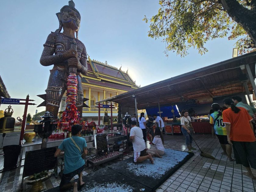 ประชาชนที่เดินทางมาไหว้ท้าวเวสสุวรรณ ต่างนำ น้ำแดงและดอกกุหลาบแดง มาถวาย พร้อมขอพรในเรื่องโชคลาภ หน้าที่การงาน และสุขภาพ โดยภายในวัดมีการเสี่ยงทายหลากหลายรูปแบบ ทั้งการเสี่ยงเซียมซี ล้วงไหจับลูกปิงปอง จุดธูปเสี่ยงทาย รวมถึงการส่องเลขจากกระถางธูป เพื่อนำไปเสี่ยงโชคในงวดวันที่ 2 มกราคมนี้