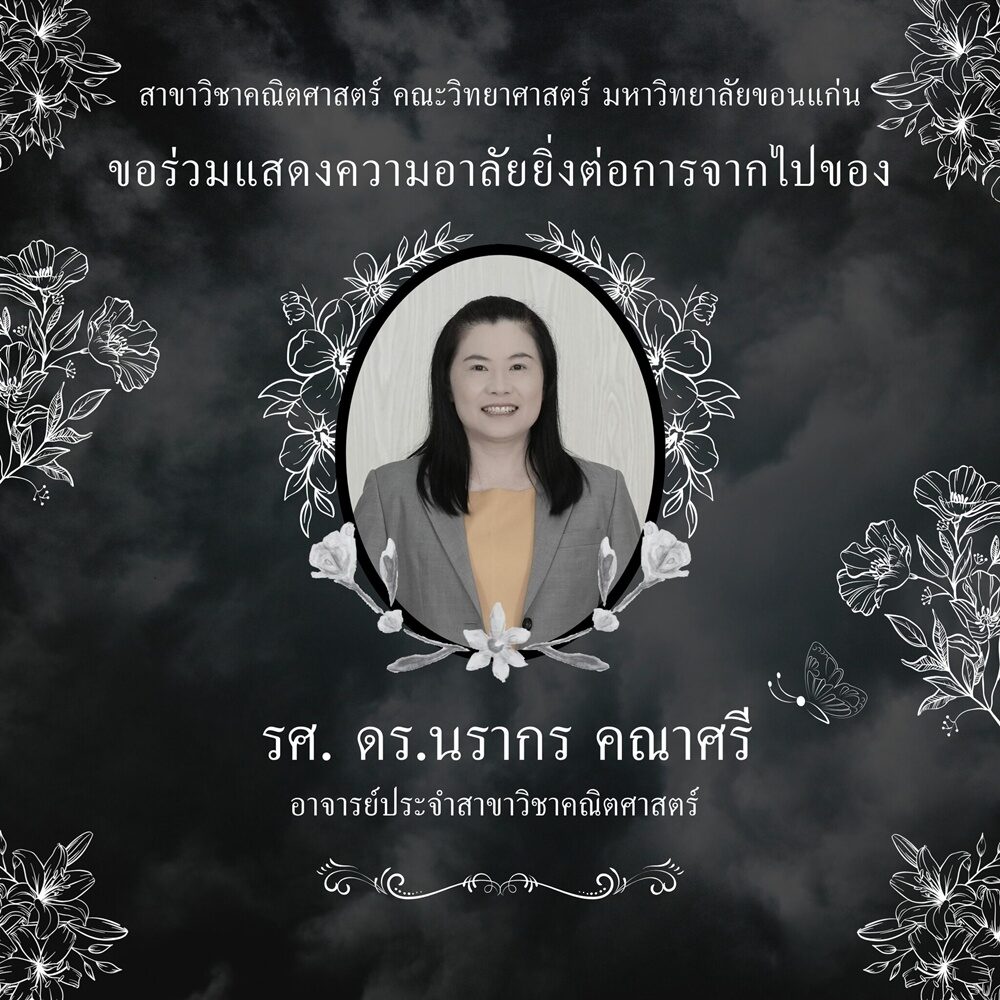 มหาวิทยาลัยขอนแก่น แสดงความอาลัยต่อการจากไปอย่างกะทันหันของ รองศาสตราจารย์ ดร.นรากร คณาศรี อาจารย์ประจำสาขาวิชาคณิตศาสตร์ คณะวิทยาศาสตร์ หลังประสบอุบัติเหตุรถยนต์ชนประสานงาเสียชีวิต ในพื้นที่จังหวัดร้อยเอ็ด สร้างความโศกเศร้าเสียใจแก่เพื่อนร่วมงาน ศิษย์เก่า และศิษย์ปัจจุบันเป็นอย่างมาก