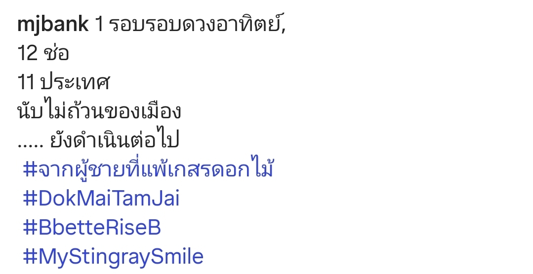 โดยหนุ่มแบงค์ยังเผยสถิติความหวานผ่านแคปชั่นภาษาอังกฤษสุดอินเตอร์ว่า “1 lap around the sun, 12 bouquets, 11 countries, Countless of cities…” สรุปใจความสั้นๆ ว่า 1 ปีที่ผ่านมา จัดดอกไม้ไปแล้ว 12 ช่อ พากันไปเช็กอินมาแล้ว 11 ประเทศ! โอ๊ยคุณพระ… วาสนาสาวโบว์แท้ๆ เลยค่ะคุณขา!