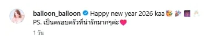 บอกได้เลยว่าเป็นเซ็ตรูปภาพฉลองวันปีใหม่ของคนบันเทิงที่เรียกเสียงฮือฮาอย่างมาก สำหรับดาราสาวหน้าแบ๊ว บอลลูน พินทุ์สุดา ตำนานความเซ็กซี่ที่หลายคนตราตรึง ได้ออกมาโพสต์รูปภาพที่เจ้าตัวได้ร่วมฉลองปีใหม่กับ เป๊ก เศรณี และ นายกฯ อนุทิน พร้อมระบุแคปชั่นประกอบว่า “Happy new year 2026 kaa PS. เป็นครอบครัวที่น่ารักมาก ๆ ค่ะ”