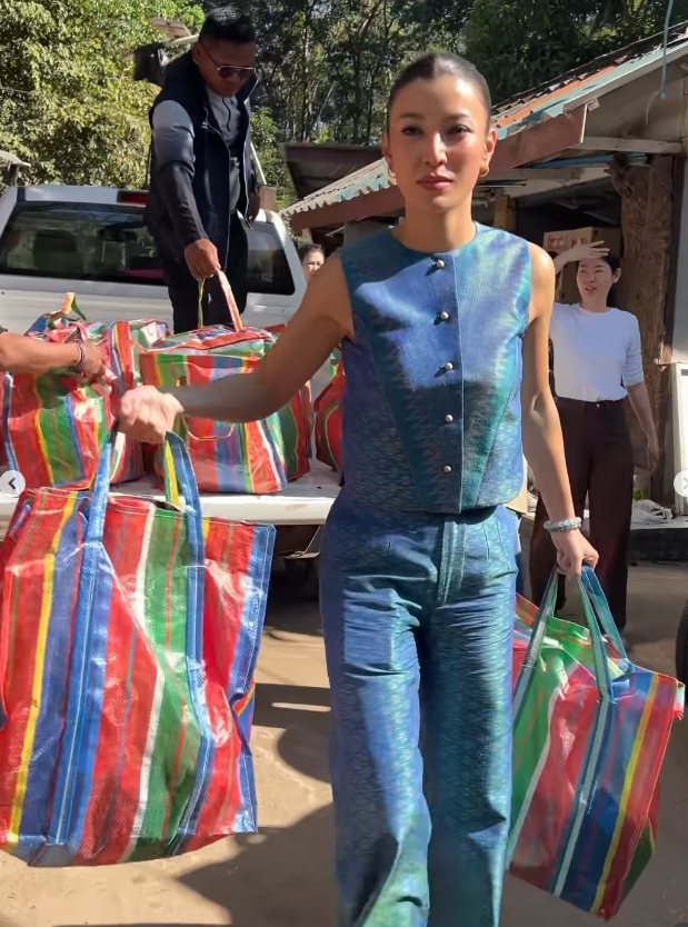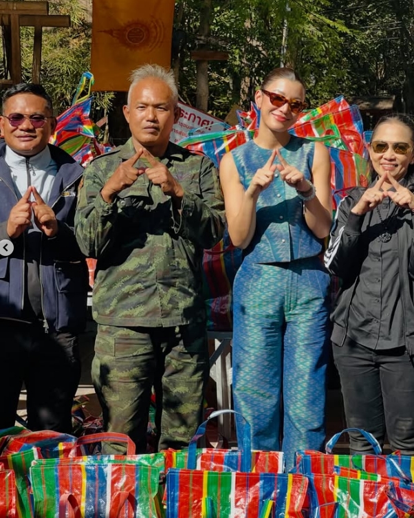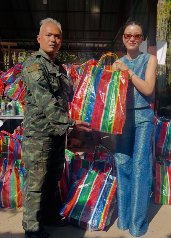 โดย ครั้งนี้ เธอลงพิ้นที่ จ.สุรินทร์ เพื่อแจกจ่ายถุงยังชีพ พร้อมข้อความว่า..
