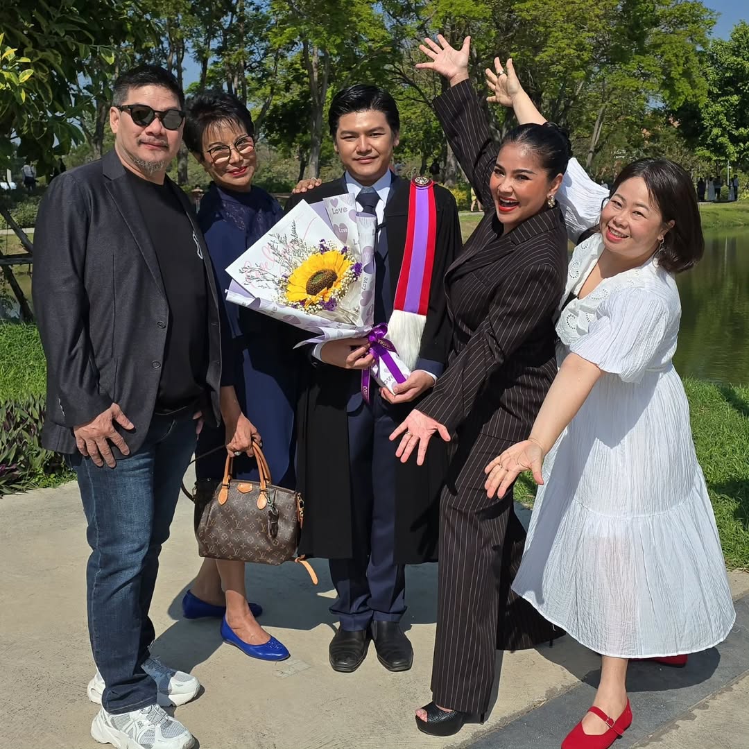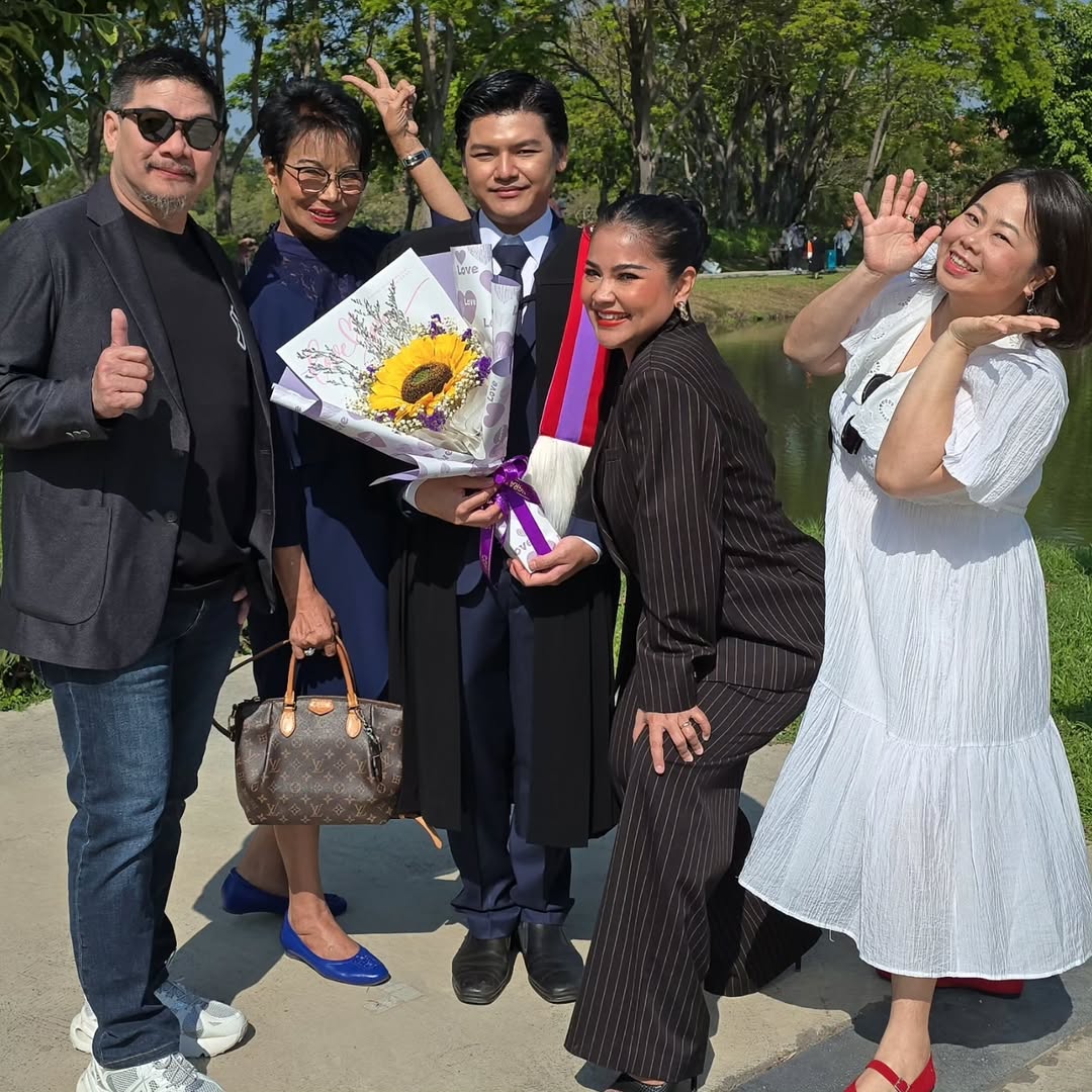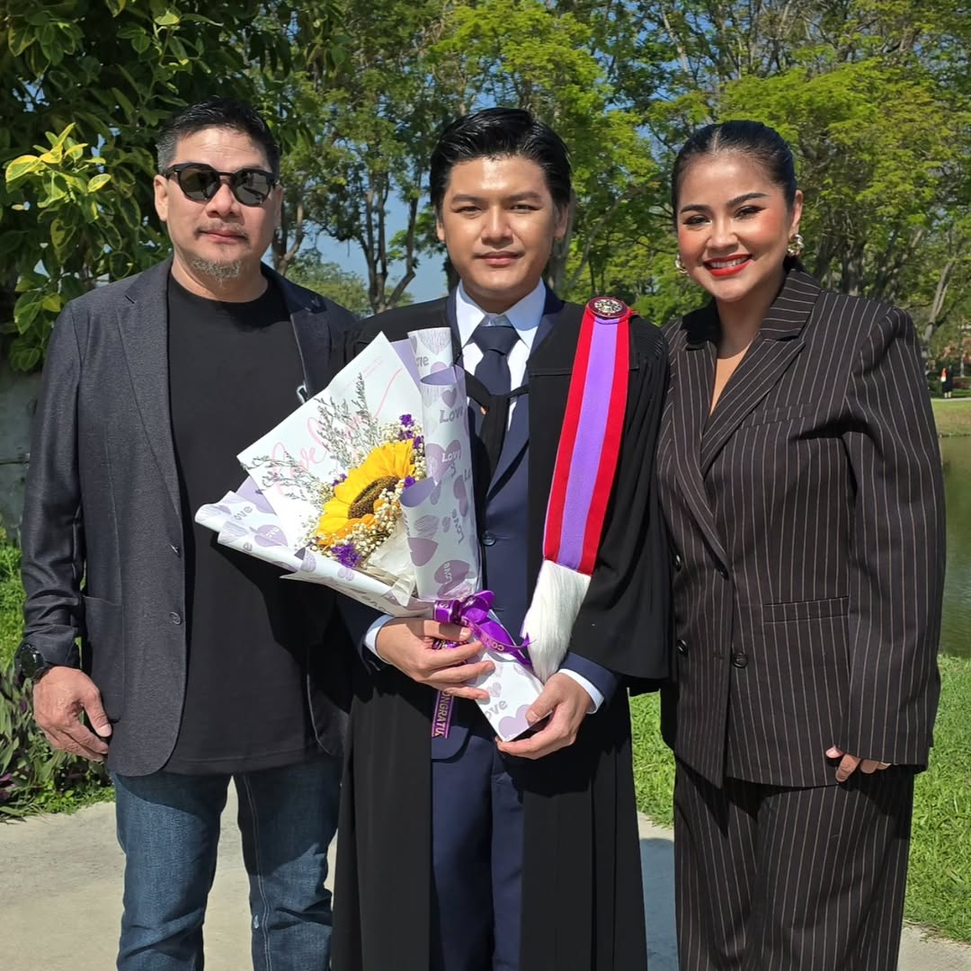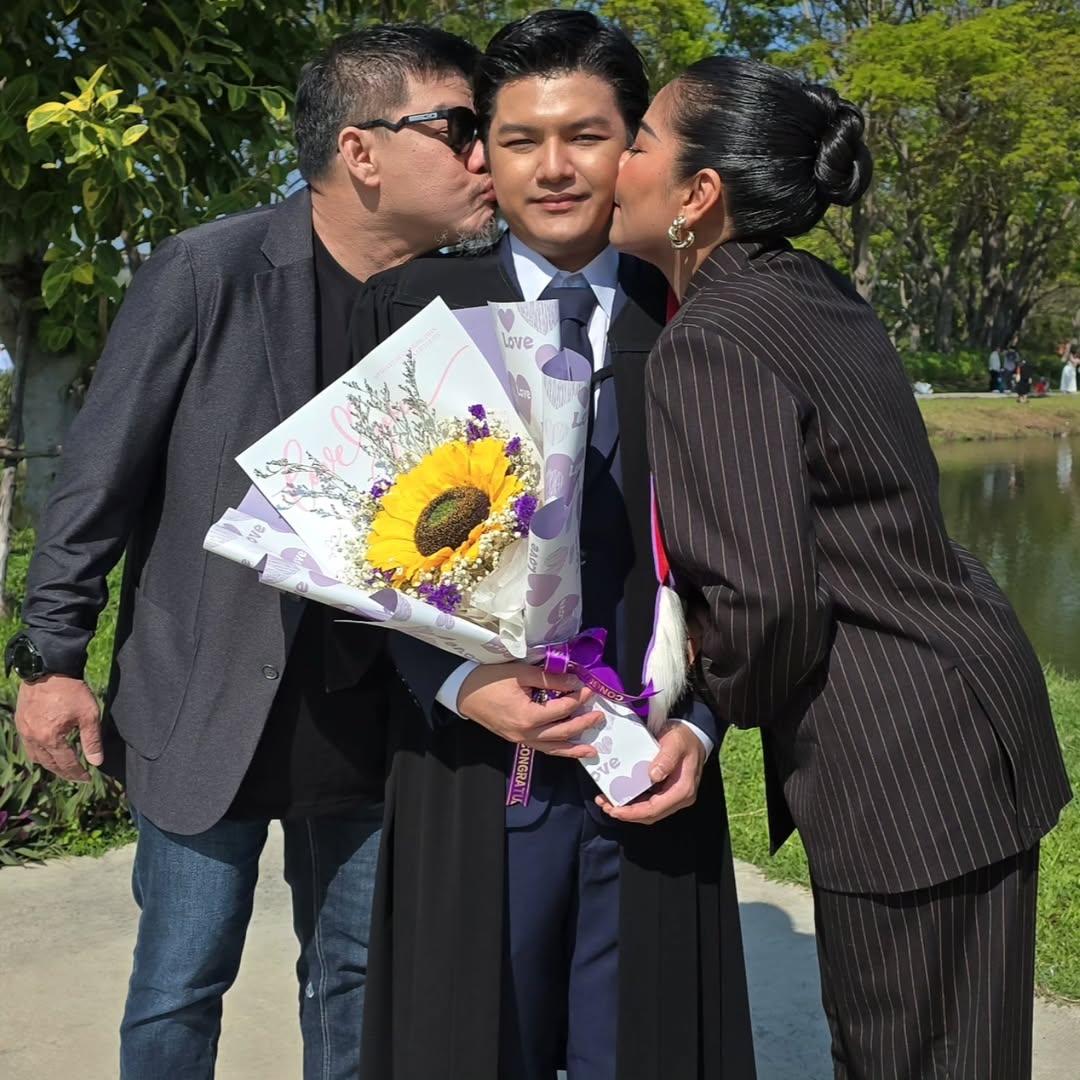 ยินดีแบบรัวๆเลยค่าาา นับเป็นความภาคภูมิใจของครอบครัวเลย สำหรับ น้องภู ลูกชายของคุณคุณแม่ตลกชื่อดัง ตั๊ก ศิริพร และ นุ้ย เชิญยิ้ม ที่ล่าสุด น้องภู ก็ได้เรียนจบระดับปริญญาตรีแล้วววว และวันนี้ก็ถึงวันที่น้องได้เข้ารับปริญญาบัตร ท่ามกลางความสุข ปลื้มปริ่มจากคุณพ่อนุ้ยและแม่ตั๊ก