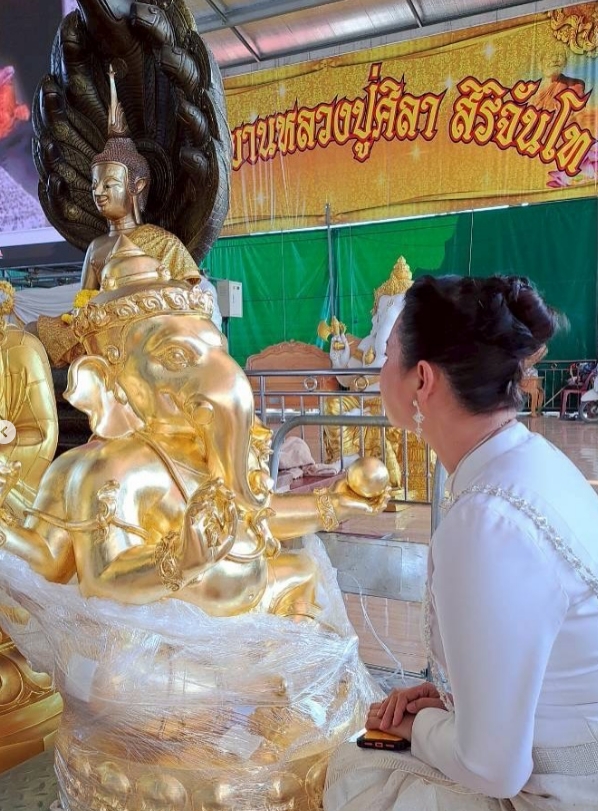 พร้อมข้อความ องค์หลวงปู่ศิลา สิริจันโท เมตตาอธิฐานจิตองค์พระพิฆเนศ และเหรียญพระพิฆเนศ ประจำมูลนิธิองค์กรทำดี พระพิฆเนศองค์ใหญ่จะอัญเชิญกลับมาประดิษฐาน ณ วิหารสำนักงานมูลนิธิองค์กรทำดี