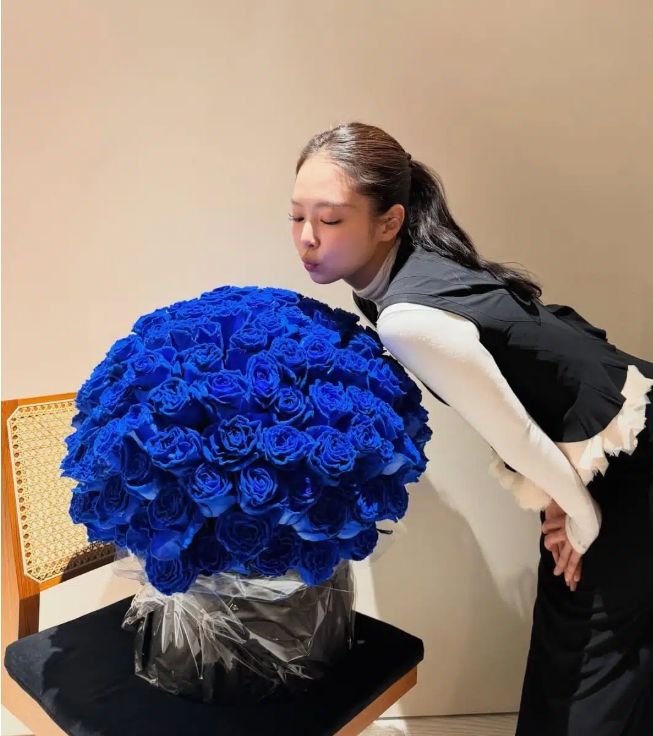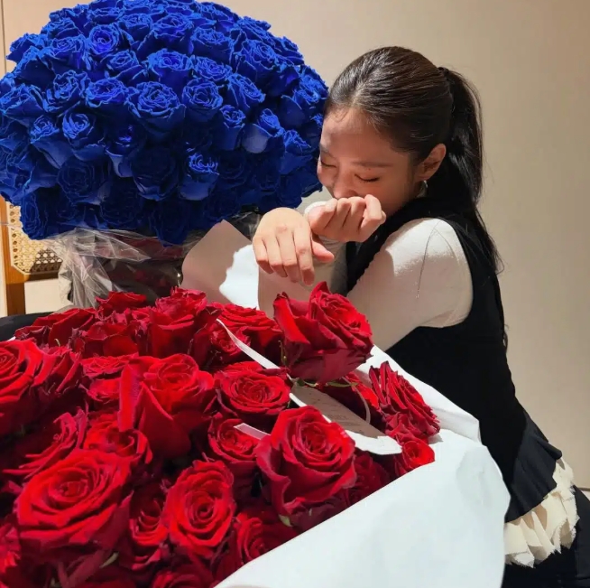 นอกจากความเท่ในคลิปเป่าเค้กแล้ว อีกหนึ่งโมเมนต์ที่ทำเอาแฟนคลับยิ้มแก้มปริและอบอุ่นหัวใจไปตาม ๆ กัน คือการที่เจนนี่โพสต์ภาพคู่กับช่อดอกไม้สีหวานช่อโตที่เธอได้รับ ซึ่งหลายคนจับตามองว่าเป็นของใคร
