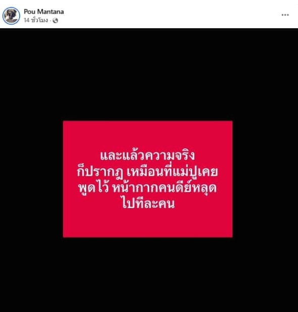 หลังจากนั้นไม่นาน ปู มัณฑนา ก็โพสต์ข้อความผ่านหน้าเฟซบุ๊กอีกครั้ง ระบุว่า “และแล้วความจริงก็ปรากฎ เหมือนที่แม่ปูเคยพูดไว้ หน้ากากคนดีย์หลุดไปทีละคน”