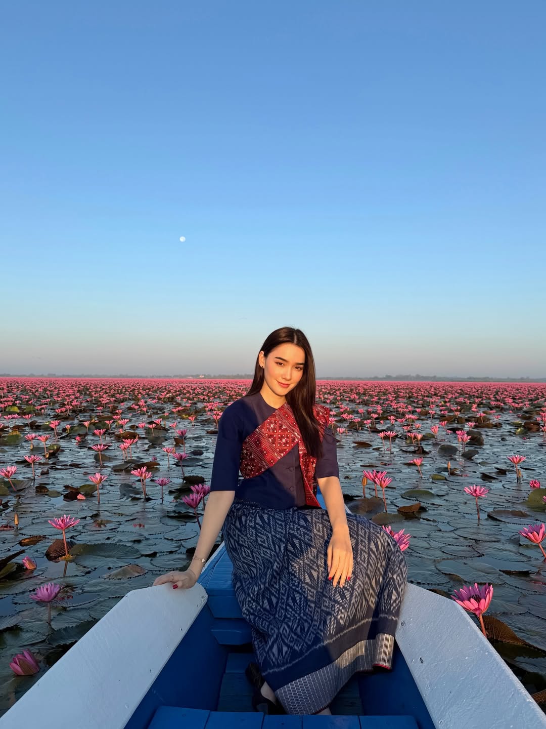 โอ๊ยยย! สวยจนต้องร้องขอชีวิตอีกแล้วค่ะ สำหรับนางเอกหน้าหวานหยด “เดียร์น่า ฟลีโป” ที่ล่าสุดทำเอาทะเลบัวแดง จ.อุดรธานี แทบแตก! เมื่อเจ้าตัวสลัดลุคคุณหนูมานุ่งผ้าซิ่นมัดหมี่ ห่มสไบแพรวาสีแดงสด ล่องเรือชมความงามของธรรมชาติ บอกเลยว่าลุคนี้คือจึ้ง! คือปัง! สวยหวานละมุนนี ดุจนางในวรรณคดีหลุดออกมาเดินเล่นจริงๆ ค่ะคุณผู้โชมมม!