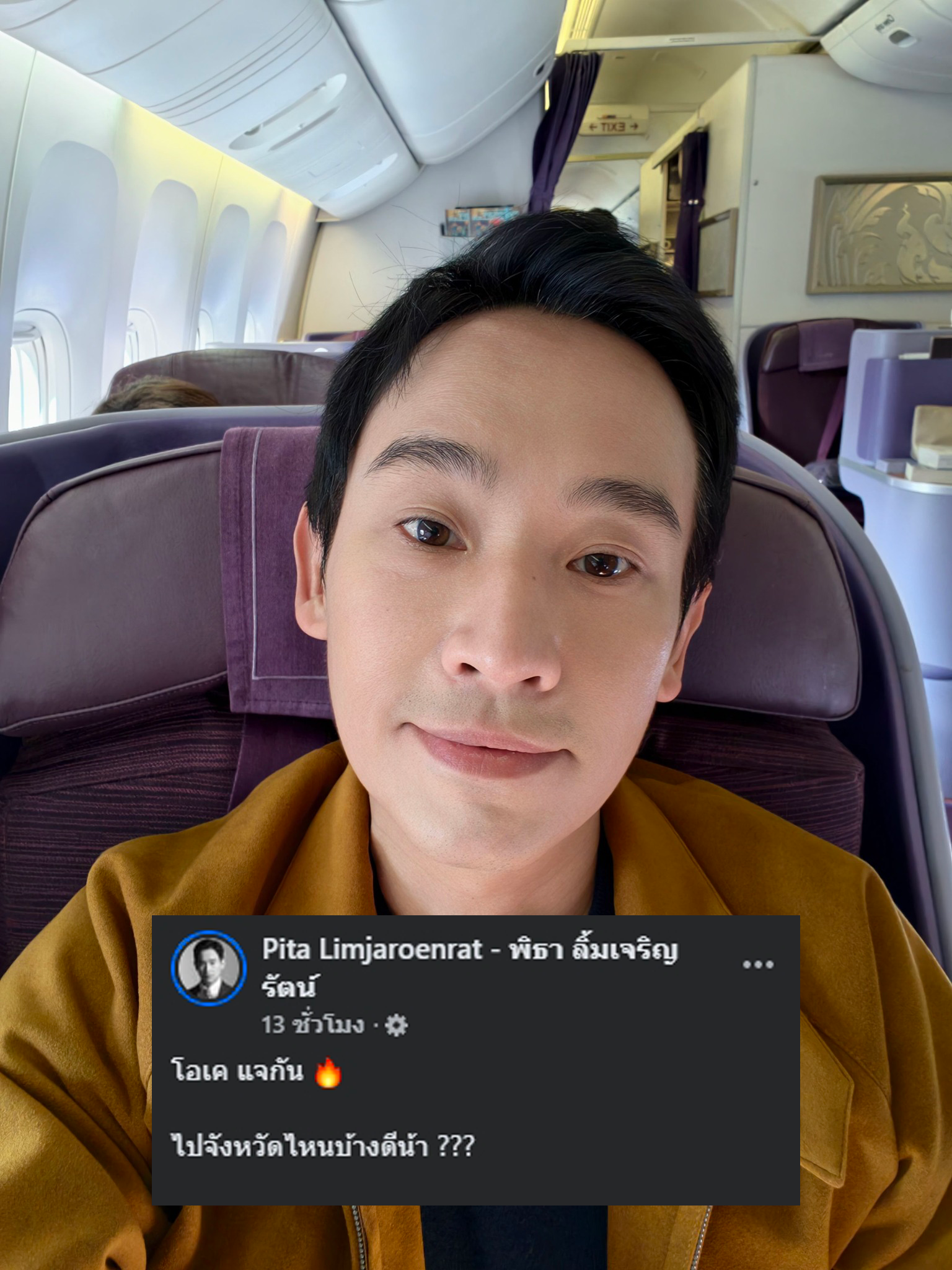 เกาะติดข่าวดาราก่อนใคร กดติดตาม “ทีวีพูล” ไหนใครคิดถึงบ้าง ล่าสุด พิธา ลิ้มเจริญรัตน์ แคนดิเดตนายกและอดีตหัวหน้าพรรคก้าวไกล โพสต์ภาพขณะอยู่บนเครื่องบิน พร้อมระบุว่า “โอเค แจกัน 🔥ไปจังหวัดไหนบ้างดีน้า ???” ทีนี้มาลุ้นกันค่าาา ว่าพ่่อส้มของเราจะไปพบปะประชาชนที่ไหนก่อน by TVPOOL ONLINE