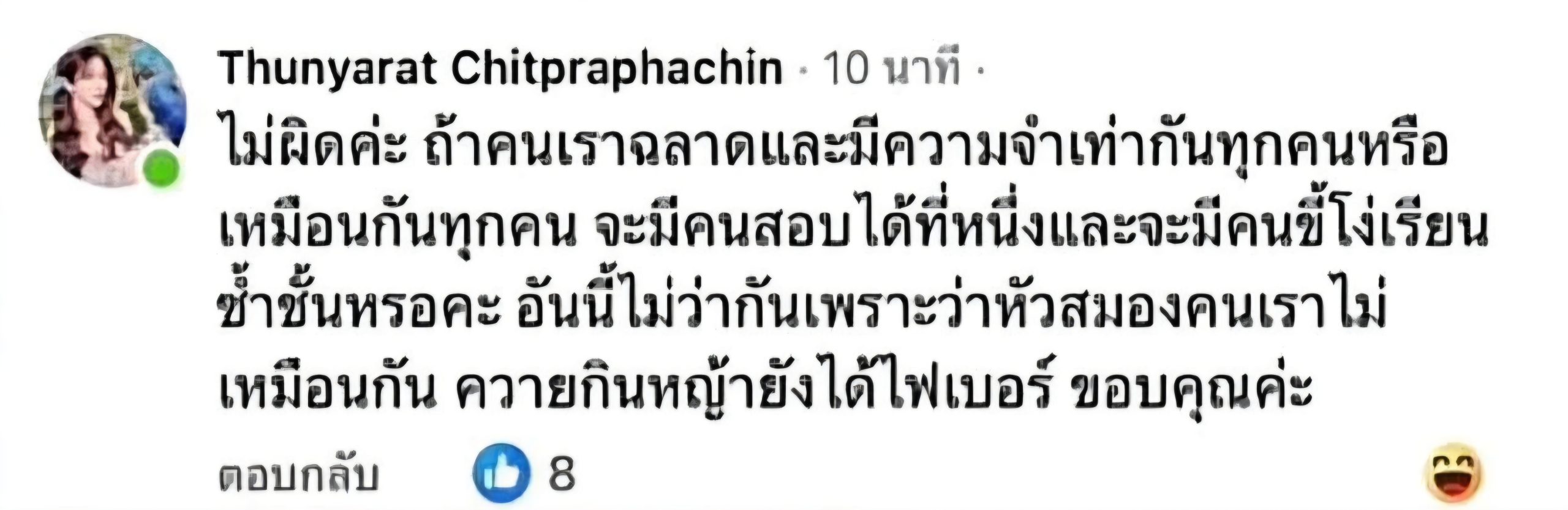 งานนี้ทำเอาตัวแม่เจ้าของมงกุฎมิสทิฟฟานี่ยูนิเวิร์สอย่าง “ฟิล์ม-ธัญญรัตน์ จิตประภาจินต์” อยู่เฉยไม่ได้ ออกมาคอมเมนต์ตอบกลับด้วยวาทะสุดแซ่บแต่แฝงไปด้วยข้อคิด โดยระบุว่า เรื่องนี้ไม่ใช่เรื่องผิด เพราะระดับสติปัญญาและความจำของคนเราไม่เท่ากัน พร้อมทิ้งท้ายประโยคเด็ด “ควายกินหญ้ายันได้ไฟเบอร์” ทำเอาชาวเน็ตถึงกับสะดุ้งทั้งไทม์ไลน์