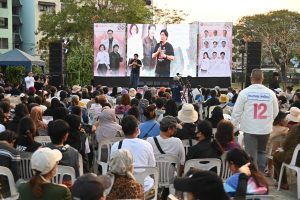 ก่อนเริ่มการปราศรัย ผู้สมัคร สส. และประชาชนร่วมยืนถวายความอาลัยแด่สมเด็จพระพันปีหลวง พร้อมทั้งยืนเคารพธงชาติ บรรยากาศเป็นไปอย่างคึกคัก มีประชาชนเดินทางมาร่วมรับฟังปราศรัยเป็นจำนวนมาก พร้อมอบดอกกุหลาบ และพวงมาลัยดาวเรืองให้กำลังใจผู้ขึ้นเวทีปราศรัยอย่างเป็นกันเอง