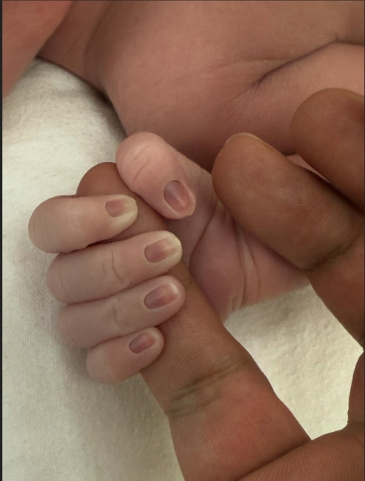 ฟลุ๊ค เกริกพล เผยภาพแรกเป็นภาพนิ้วเรียงกันอย่างสวยงามของเบบี้ที่จับคุณพ่อไว้อยู่ พร้อมแคปชั่น “Welcome my @babynaliya to this world”
