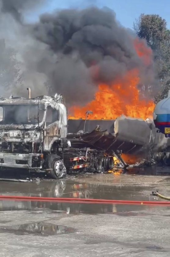 หลังรับแจ้งเหตุ เจ้าหน้าที่ได้ประสานหน่วยกู้ภัยและรถดับเพลิงจากพื้นที่ใกล้เคียงเข้าควบคุมสถานการณ์อย่างเร่งด่วน โดยในจุดเกิดเหตุยังมีเสียงระเบิดดังขึ้นเป็นระยะ สร้างความแตกตื่นให้กับประชาชนและผู้ใช้เส้นทางใกล้เคียง เจ้าหน้าที่จึงเร่งปิดกั้นพื้นที่โดยรอบเพื่อความปลอดภัย