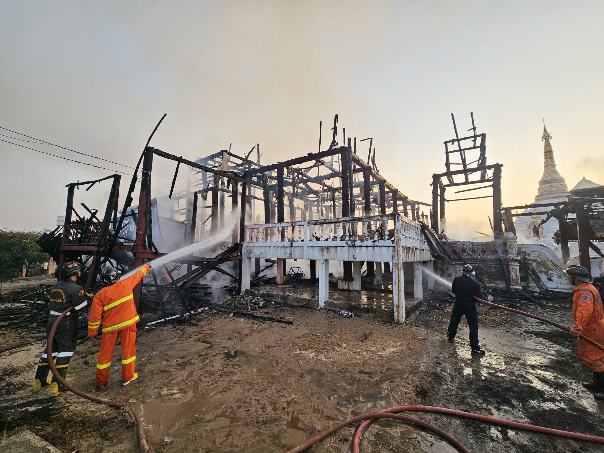 ขณะเดียวกัน เจ้าหน้าที่กู้ภัยจากสมาคมกู้ภัยลำปาง กู้ภัยสว่างลำปาง และเจ้าหน้าที่ดับเพลิงเทศบาลนครลำปาง ยังคงเร่งฉีดน้ำหล่อเลี้ยง เพื่อป้องกันไม่ให้ไฟปะทุซ้ำ พร้อมเตรียมประสานรถแบ็กโฮเข้ารื้อถอนซากอาคาร และสำรวจความเสียหายอย่างละเอียด ส่วนพระพุทธรูปองค์ใหญ่ภายในวัด อยู่ระหว่างการตรวจสอบว่ามีความเสียหายมากน้อยเพียงใด